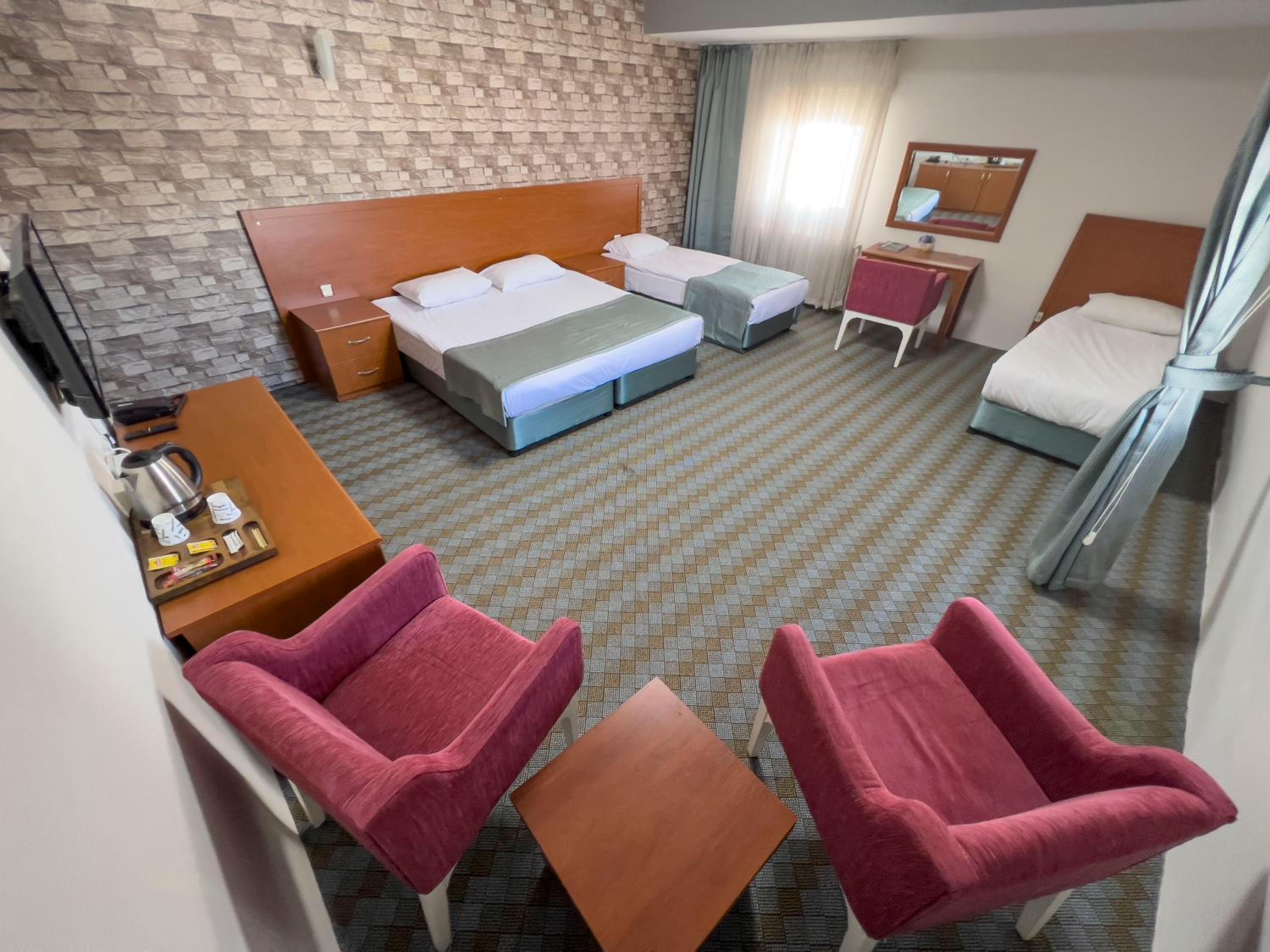 Yataklar çok rahatsız , 3 gece kaldık oda temizliği hiç yapilmadi , su sıkıntısı vardi , yemeklerde zeytinyağli mezeler haricinde iyi değildi , sadece otel konumu iyiydi