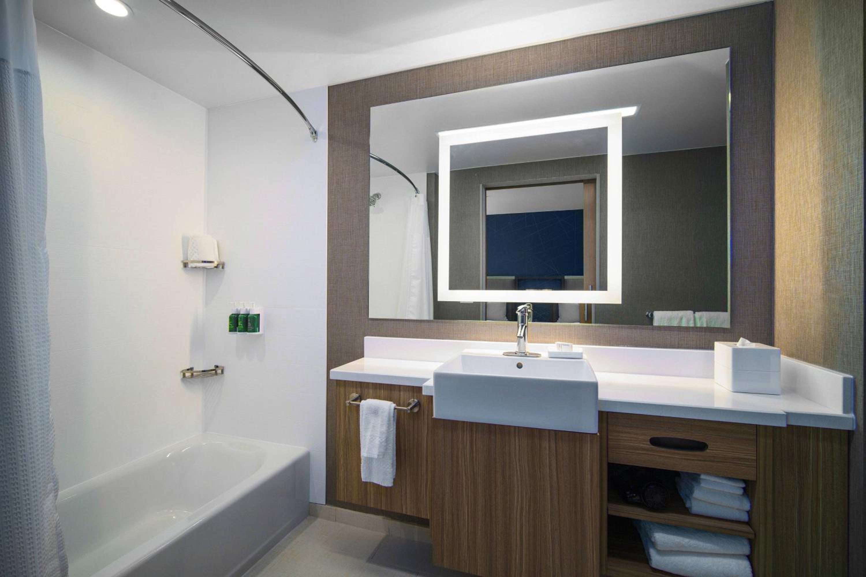 Hotel overbooked and did not have a room for us. The young lady at the front desk was rude and very dismissive of my frustration. We tried to check in right at 3pm and they had empty rooms but were saving them for more important guests, weird when my reservation was non-refundable. I guess they overbook and then kick out the Hotels.com reservations (even though in my case I am also a Marriott Bonvoy Member). She offered to get us a room at the hotel next door (same owner) but not the same room type, we booked the 2 Queens + Sofa Bed, and the hotel next door had only 2 Queen room, so she offered a $20 discount (yipee...). Went next door, and guess what, the room not ready and then found out they only had a King room available (that doesn't work for 4 grown adults). Went back to Springhill to cancel and the same little gal at the front desk was even more rude, dismissive, and condescending. She canceled the room, so I wasn't charged and acted like she was doing me a favor (didn't have a room available anyways). Ended up booking at another nearby hotel and paying significantly more as all hotels in the area were nearly full due to a concert in town. What I learned, the same owner owns this property and the Tru by Hilton next door, they overbook then try to move you the hotel next door (confirmed with both front desk agents). Beware if you book with Hotels.com!!