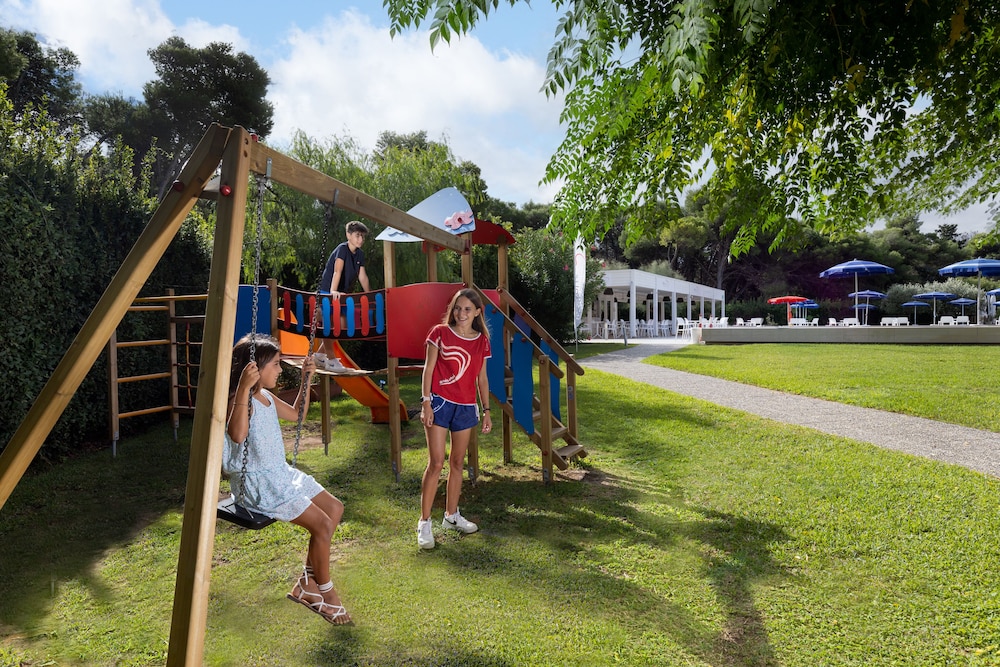 Abbiamo soggiornato due notti in questa struttura molto accogliente, con belle camere spaziose, una bella piscina e una spiaggia attrezzata facilmente raggiungibile con una camminata in mezzo alla macchia mediterranea di circa 1 km, oppure con un trenino messo a disposizione dalla struttura. Avevamo una camera vista piscina con una loggia esterna con tavolo, due poltroncine e stendi biancheria, molto utile per i costumi. Abbiamo scelto la formula mezza pensione, la colazione e la cena erano servite in una bellissima sala molto ampia con spazi interni, una terrazza esterna e tavolini esterni protetti da ombrelloni. Il servizio è Self service ma servito dal personale dell’hotel, cosa che abbiamo molto apprezzato per una questione di igiene. la struttura forniva anche una animazione soft, cosa che ho molto apprezzato, e ogni giorno c’era la possibilità di fare attività alternative alla spiaggia quali passeggiate e gite nei luoghi di interesse più vicini. Personale molto attento, gentile e sempre disponibile a soddisfare le nostre esigenze. Consiglio vivamente la struttura, è un luogo dove tornerei.