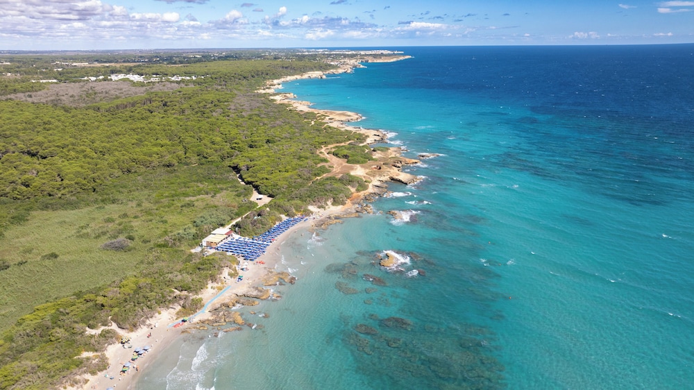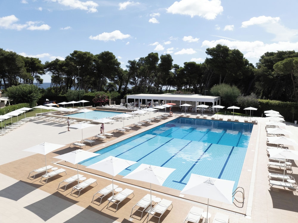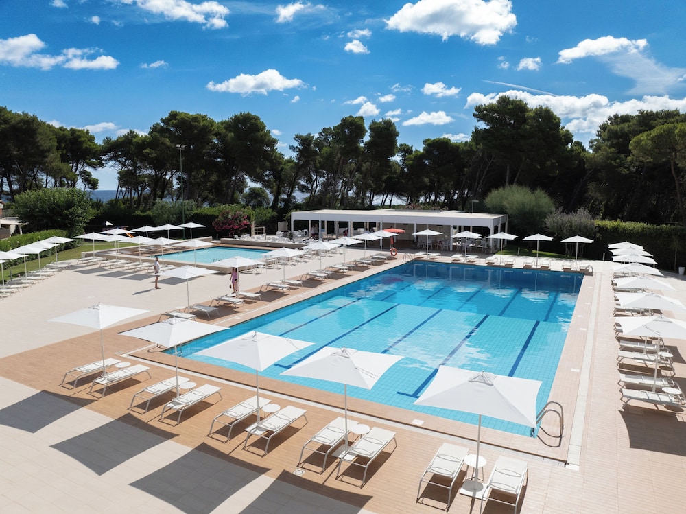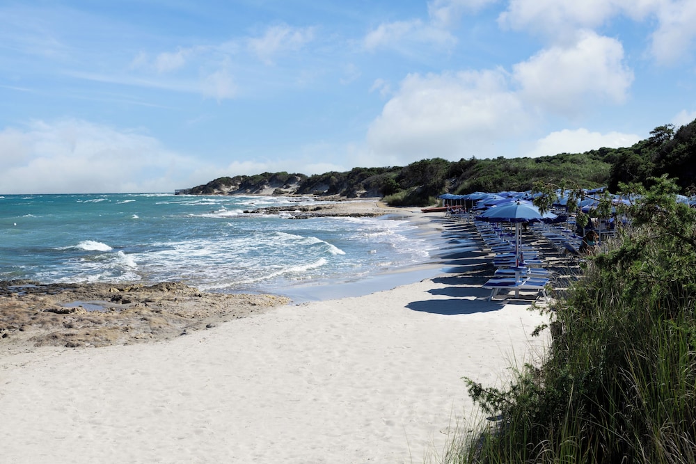 Chegamos de madrugada as 2da manha por um atraso da cia aerea( Bari). Trata-se de um resort que fica ha 2:30 de carro de Bari. Sugiro ser ponto de apoio de 2 cidades: Gallipoli(57 min carro) , Otranto(20 min carro) e Lecce. Para outras cidades como Polignano a mare, Alberobello sugiro ponto de apoio mais próximo! O resort eh muito bom, extremamente gostoso, piscina gigante, quadras, recreacao para crianças, estacionamento gratuito, praia particular com um carrinho de golfe que te leva( pode ir a pe tb). Tem bar na piscina , tem que pagar la mesmo! Nao pode colocar na conta do quarto. La é um hotel que acredito ser de multipropriedade, pois tem algumas meses reservadas para estas pessoas! Poucas pessoas ali falam ingles. Mas adoramos!