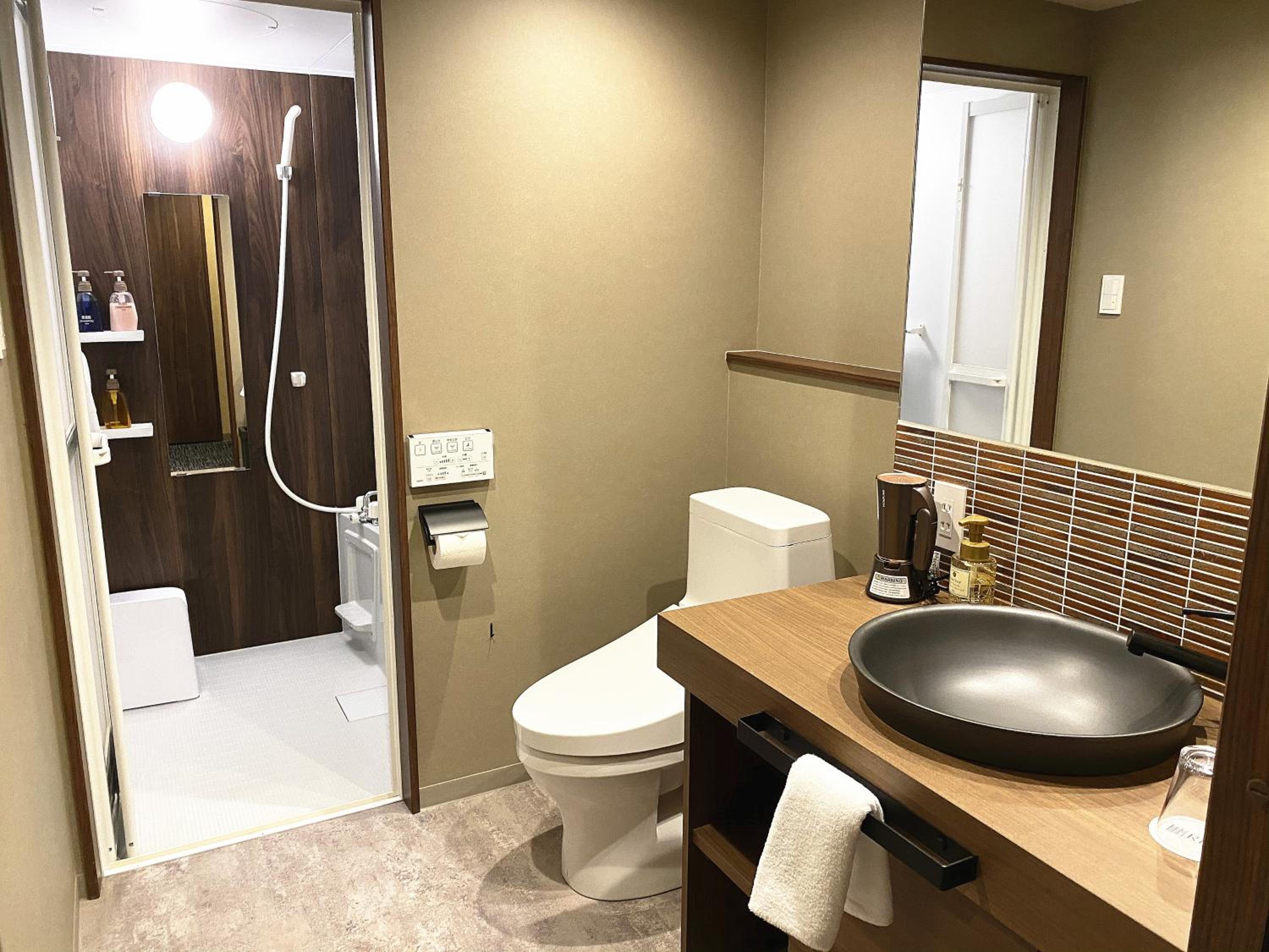 Each air-conditioned room at Rinn Kyoto Station West is equipped with modern amenities including free WiFi, a flat-screen TV, and a private bathroom. The cozy rooms also feature a desk, bed linen, and towels, ensuring a comfortable stay for guests.