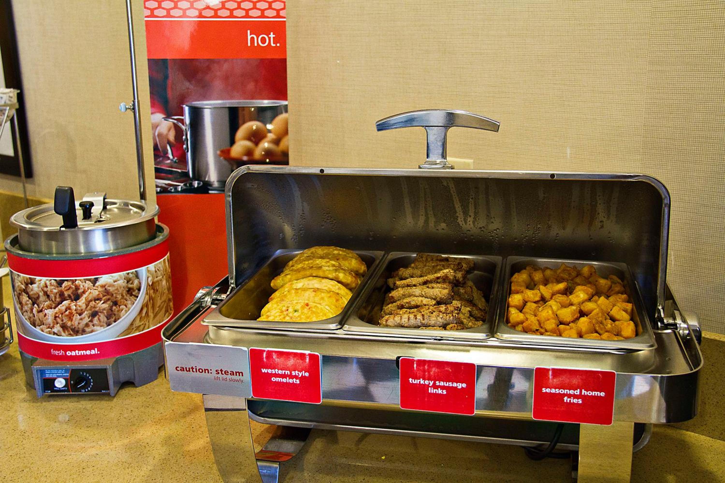 The staff didn't communicate with each other well. I got a different answer from the night staff vs the day staff. Booking.com only reserved very small rooms that are right across from the elevator with only a view of the roof, and the pet policy was not made clear beforehand. I showed up with 3 pets and their policy is 2 pets max for $75 extra, so luckily my brother was able to help out, but otherwise I'd have to cancel and not get refunded since it was booked through a 3rd party. Having pets right across from the noisy elevator made sleeping extremely difficult. The one thing that was getting me through the night was a hot breakfast in the morning, but they ran out of eggs 20 minutes before breakfast was over. Several other people were disappointed they couldn't get eggs also. They said their oven took 25 minutes to warm up and breakfast would be over by then so they didn't plan well. Breakfast from 6a-10a doesn't make sense for people who are not traveling for business. There were lots of smokers near the entrances with some of them being staff members, and the 2nd floor hallway smelled like smoke. There wasn't access to any streaming services which would've been nice.