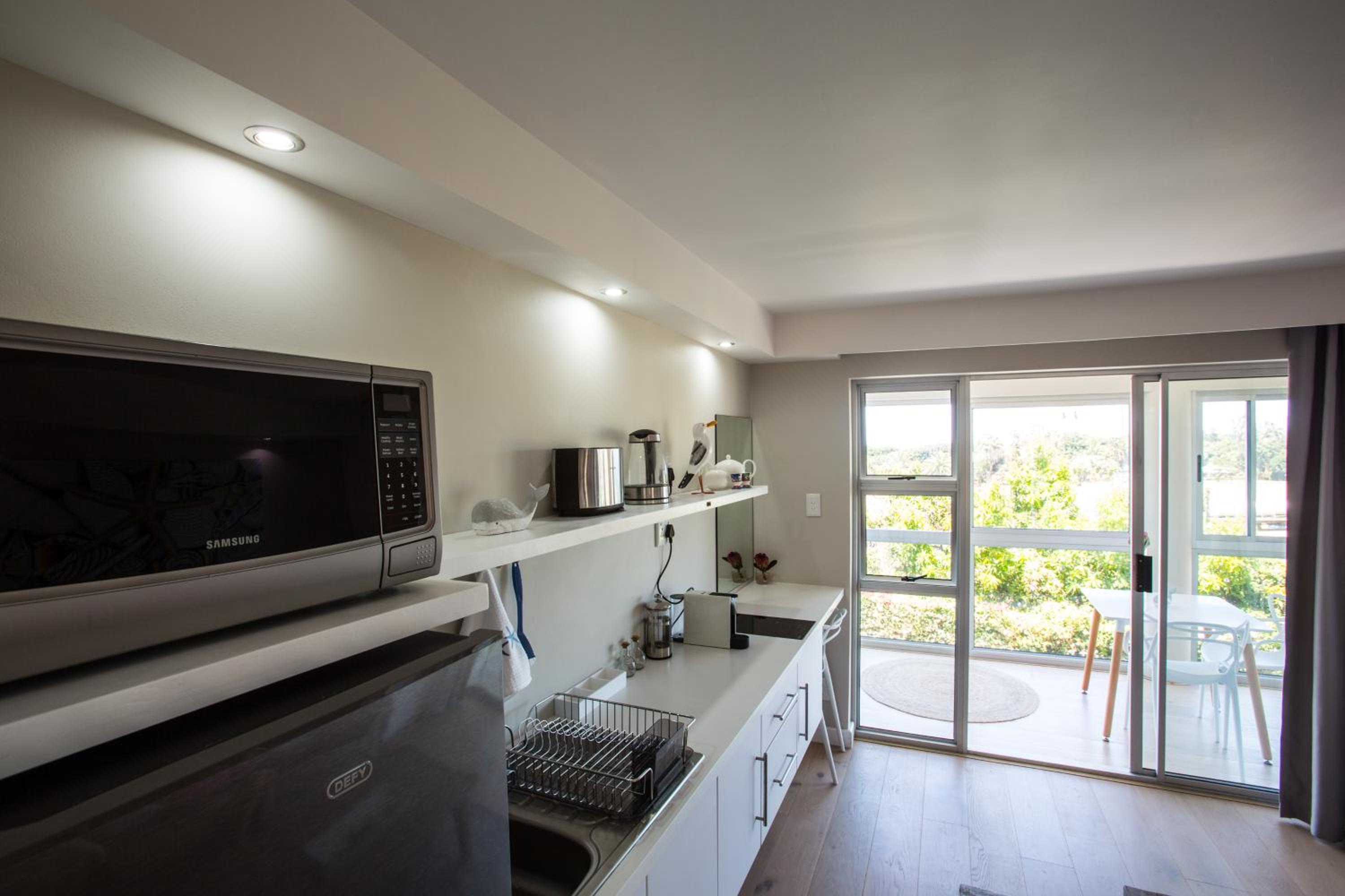 A warm and friendly welcome. The apartment is perfectly situated in Wilderness within walking distance to good restaurants and shop. Enough of a kitchen and a Weber grill to prepare simple meals. Very clean and comfortable.