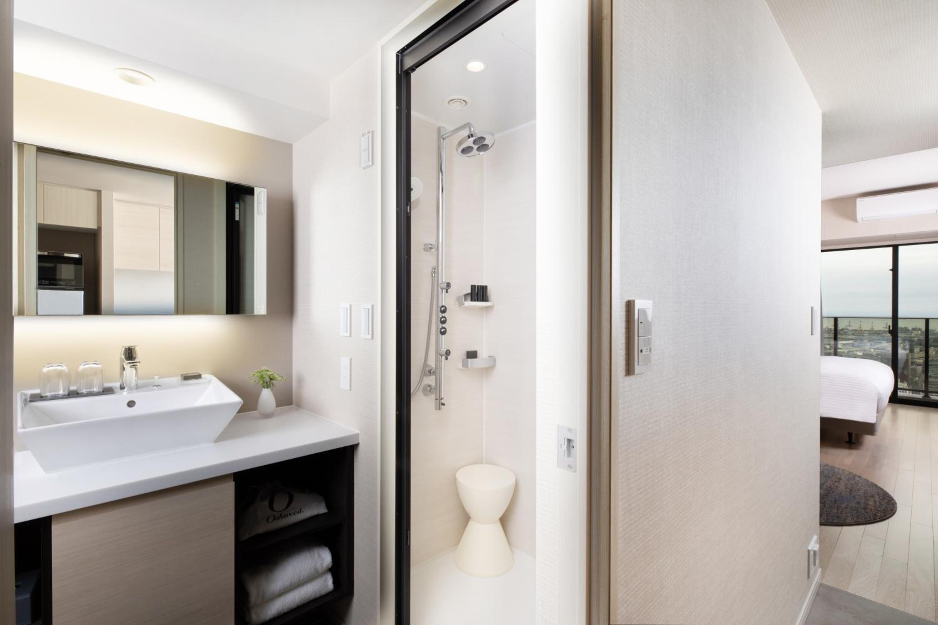 Unwind in the shared lounge area or take advantage of the fitness centre for a rejuvenating workout. With parking on-site and a lift for easy access, your stay at Oakwood Suites Yokohama promises both relaxation and convenience.