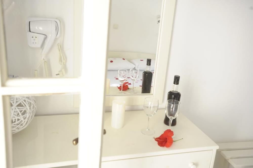 Ikke noget at udsætte på selve værelset. Hotelmanageren Stelios var utrolig venlig og serviceminded. Han tog os med i sin private bil, ind til Parikia, da han alligevel skulle derind, så vi slap for at tage bussen. Hotellet har gratis transitbus til og fra Parikia, så ring i forvejen når I ankommer med færgen, så I kan blive hentet. Absolut et besøg værd. WIFI er ikke hurtig, og kan kun række på de værelser der ligger umiddelbart oven på receptionen.
