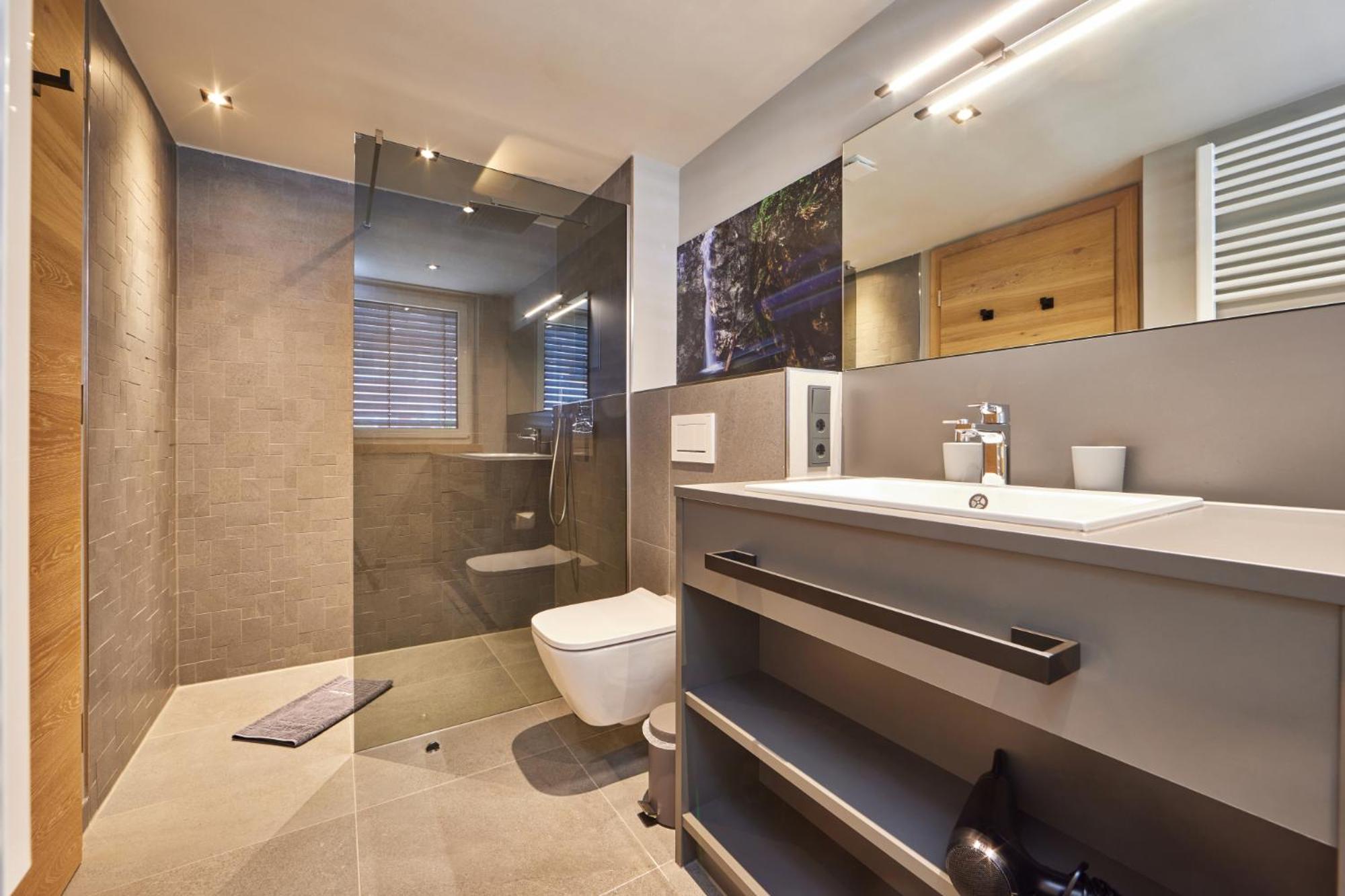Das Badezimmer wurde beim Duschen ziemlich nass, aber dank Fußbodenheizung wird es auch schnell wieder trocken. Daher kein Abzug.