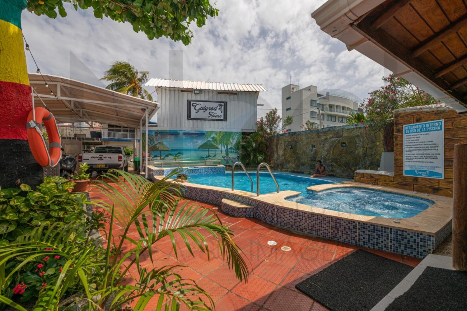 Enjoy picturesque garden views from your balcony at Hotel Galyrod House, just a short walk from Parceras Beach.