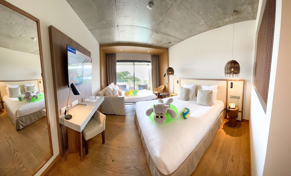 The hotel was clean spacious and modern if you don’t have a car walking into the nearest town is about 20 minutes so not too bad and buses run quite late x the only negative feedback restaurant was closed 2 out of the 3 days we stayed no one informed me of this until we checked in to the hotel also sea view was a long way off so a bit disappointing x the pool was lovely and the policy of not being able to reserve a bed great meant everyone had a chance