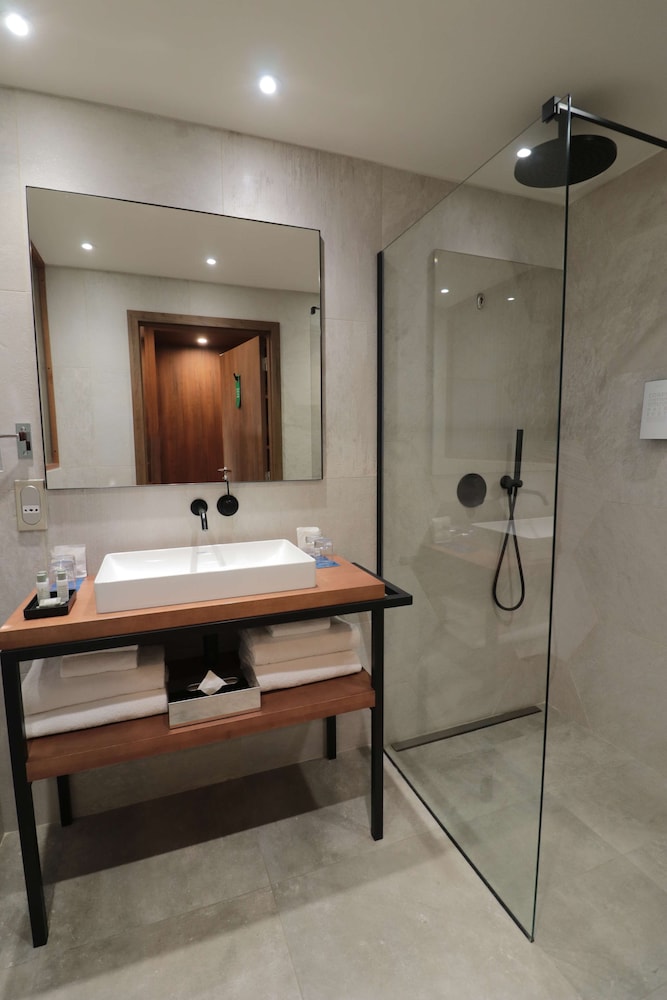 Very clean and modern, hotel room was spacious and there was free charging for our electric car!