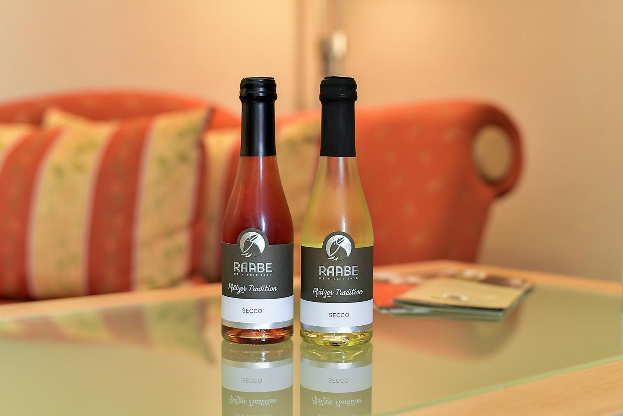 Die Zimmer im Nebengebäude sind schon etwas in die Jahre gekommen, aber sie haben Charme. Uns hat es sehr gut gefallen. Kostenlose Parkplätze am Haupthaus, zentrale Lage, nettes Personal und zu guter letzt eine tolle Weinauswahl des Weinguts Raabe auf dem Zimmer. Im Kühlschrank vier verschiedene Flaschen Weißwein, eine Flasche Rosé und auf dem Kühlschrank vier Flaschen Rotwein. Da findet jeder etwas 😊. Und vor allem um die 7 Euro für eine Flasche Wein fanden wir absolut lobenswert.