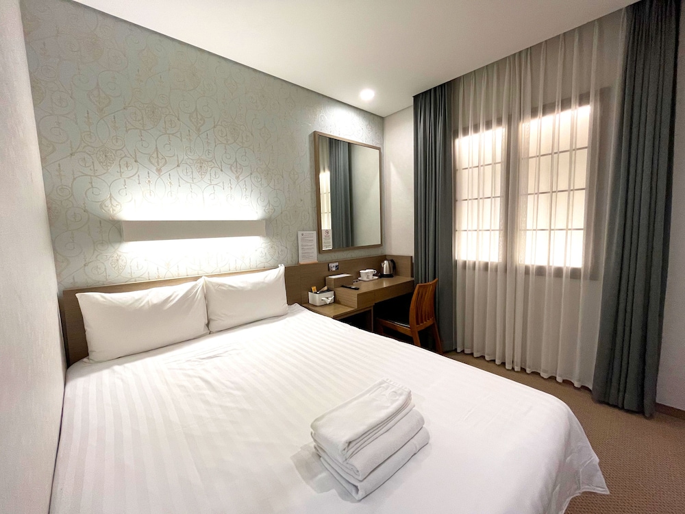 딱딱한 침대. 바닥 카펫은 얼룩 투성. 곰팡이 핀 샤워커튼. 시끄러운 공조기. 락스냄새나는 수건. 여기저기 먼지투성. 이불에서 먼지가 피어오르는게 보임. 그냥 바닥에 위치한 저상 냉장고(허리를 많이 굽혀 숙여야 내부가 보임) . 밀리오레호텔의 일부객실을 위탁해서 운영하는 호텔로 보임. 엘리베이터는 대환장. 명동관관객에게는 최적의 위치. 최악의 호텔.