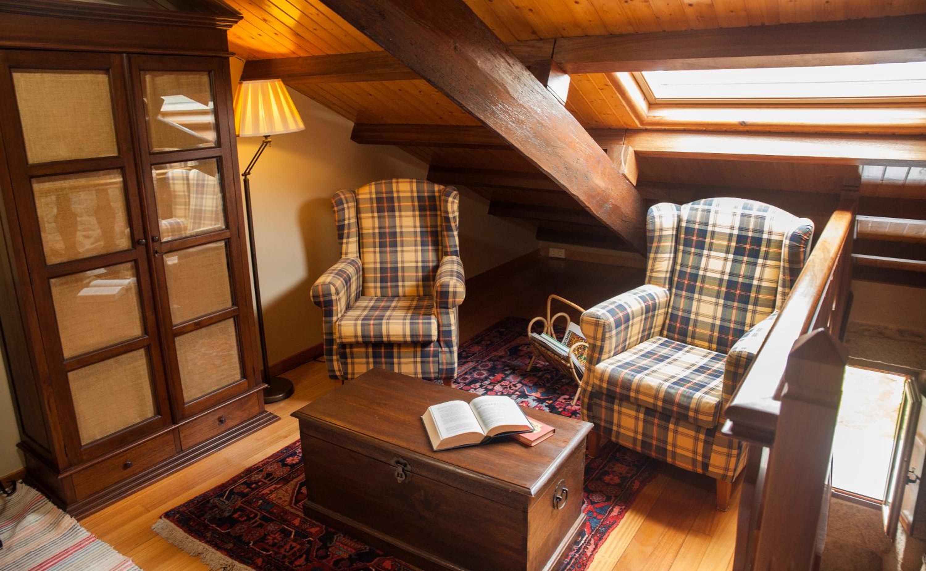 Step into a blend of old-world charm and modern elegance with bare stone walls, wood beams, fireplaces, parquet flooring, and stylish hardwood furnishings.