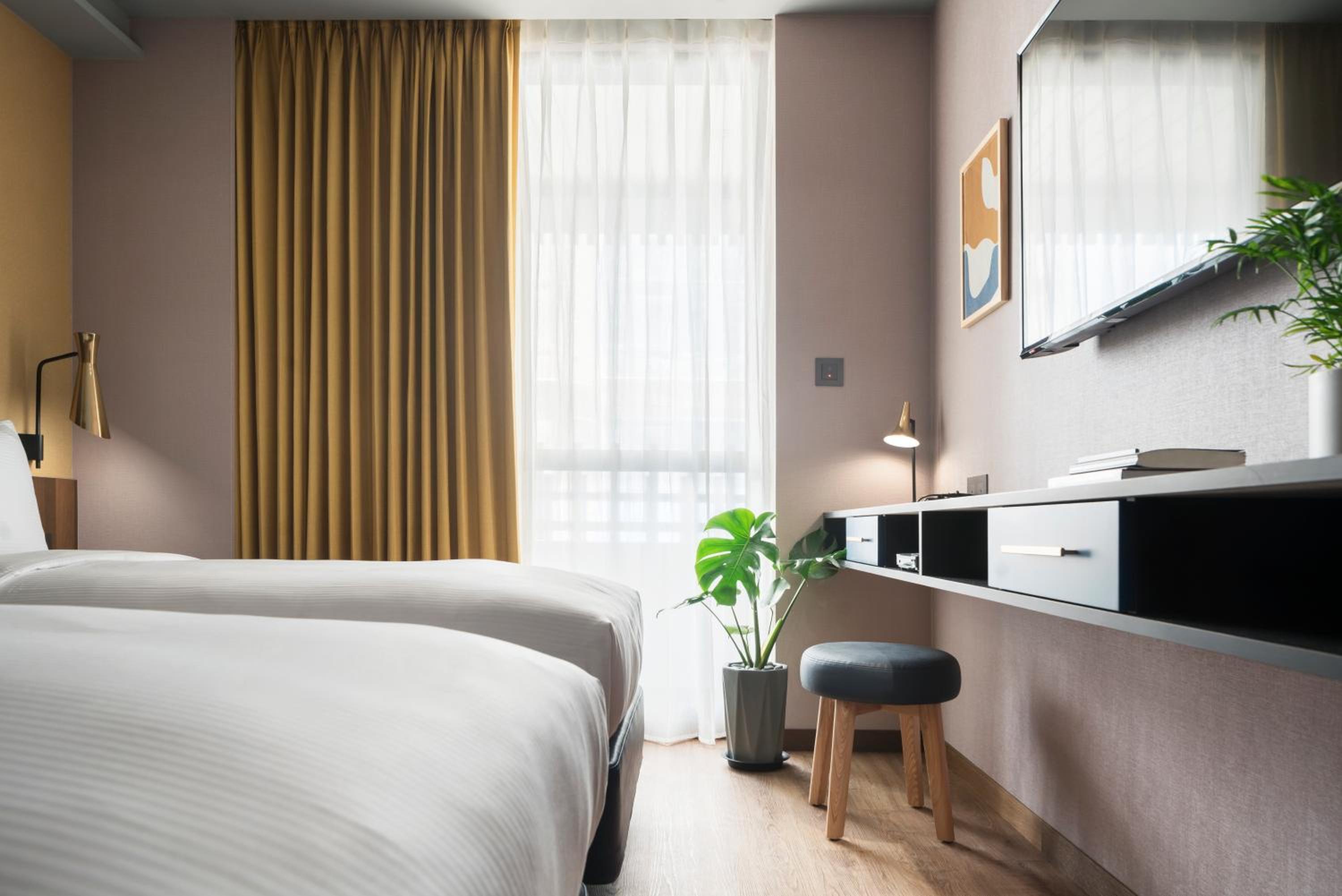 Kindness Day Hotel in Tainan offers elegant rooms with modern amenities such as flat-screen TVs, air conditioning, and private bathrooms. Some rooms even feature a charming balcony for a relaxing stay.
