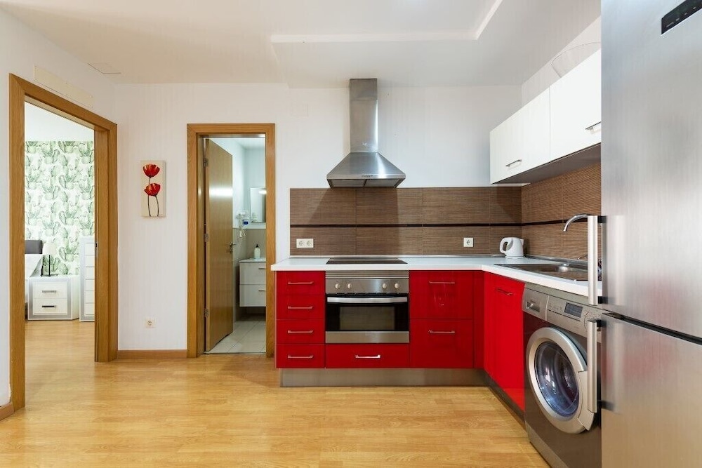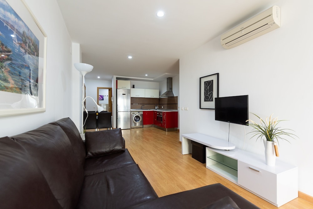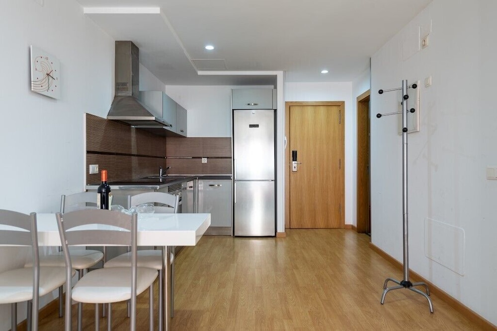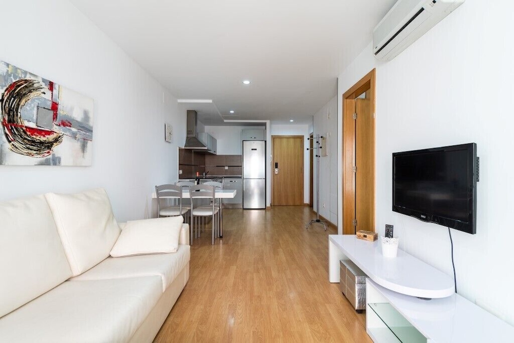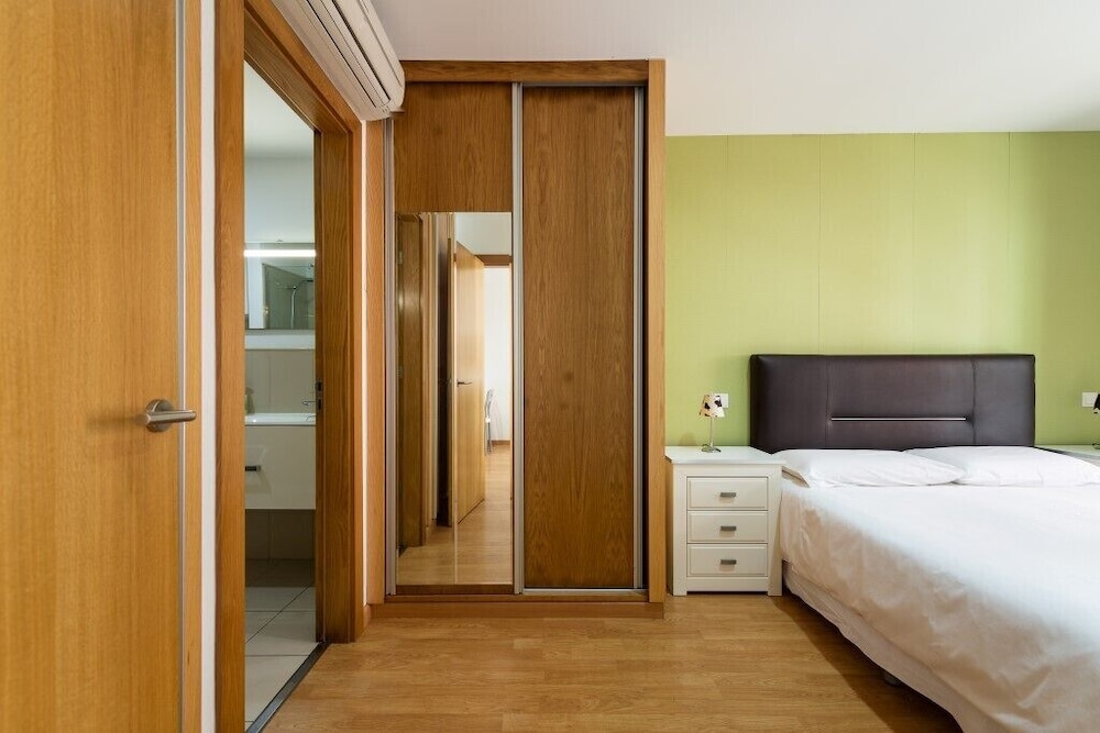 A 32 second walk to the beach/ promenade. Lovely apartment, beautiful lobby and helpful to have a lift as in the 4th floor. Comfy bed. Washer and dryer good to have too. I felt we made a really good choice staying here. The only niggle was on one very windy day a pipe/cable on the roof area above was making a vibrating noise - we didn't report it till our last day so hopefully now fixed.
