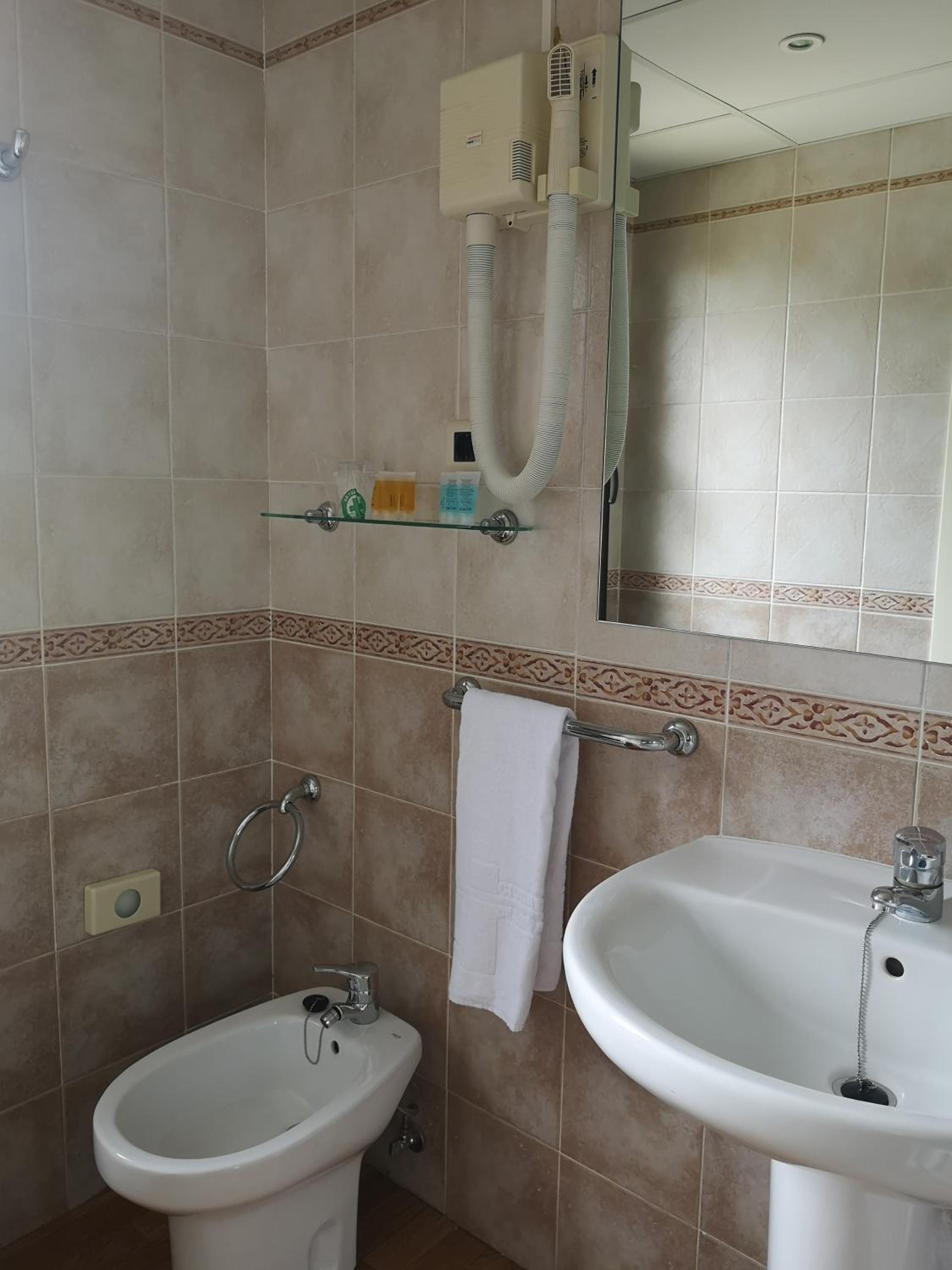 Het terrein om het hotel heen (sportveldjes, parkje) en het zwembad waar je gebruik van mag maken is allemaal een beetje vergane glorie. Dat en het hotel zelf kan wel een upgrade gebruiken.