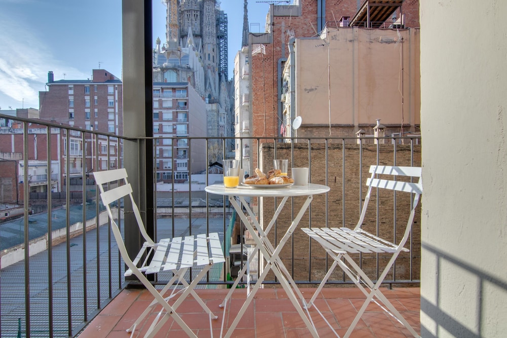 Lovely flat very close to the Sagradi Familia. Very spacious lounge with views of the sagrada familia. Well equipped kitchen. Ideal for families as second bedroom is not huge. Good idea to take ear plugs as main bedroom is on a busy road.