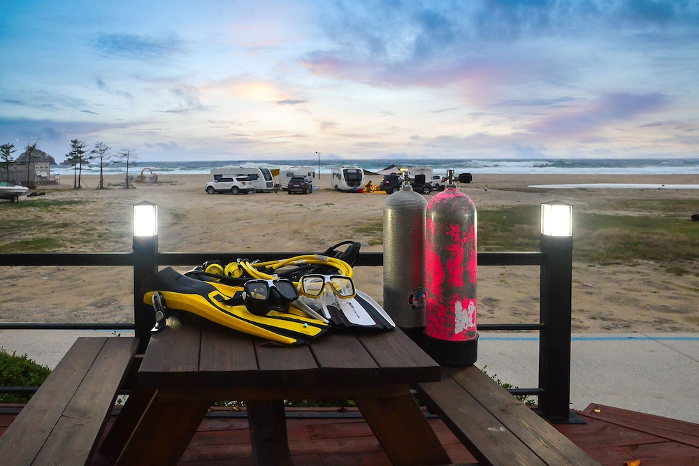 숙소 위치는 완벽했습니다. 해변 바로 앞에 위치 하고 있고, 해변가 입구 및 숙소 입구에 포차를 운영하고 있고 1층의 커피숍에서 생맥주도 한 잔 할 수 있었고...