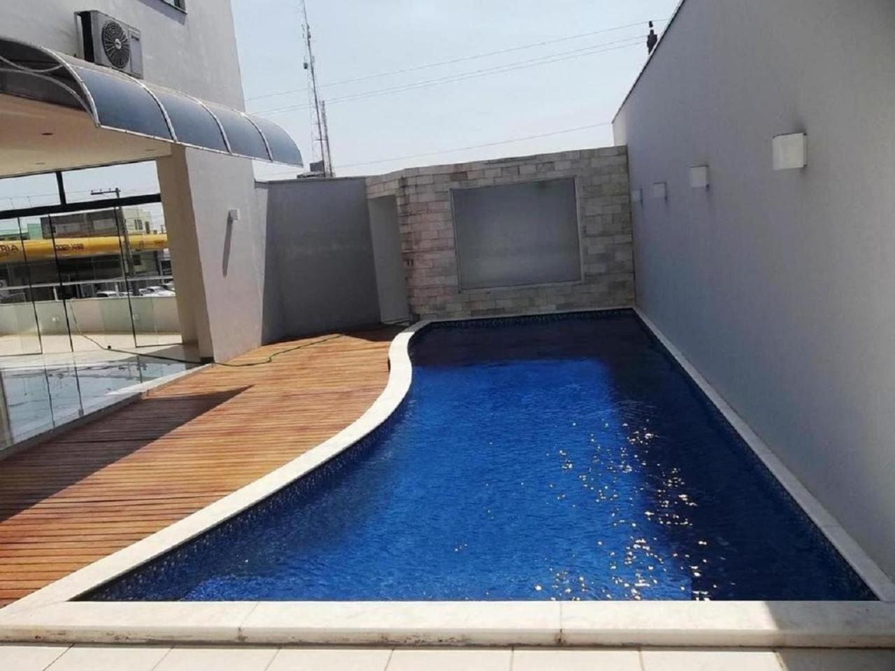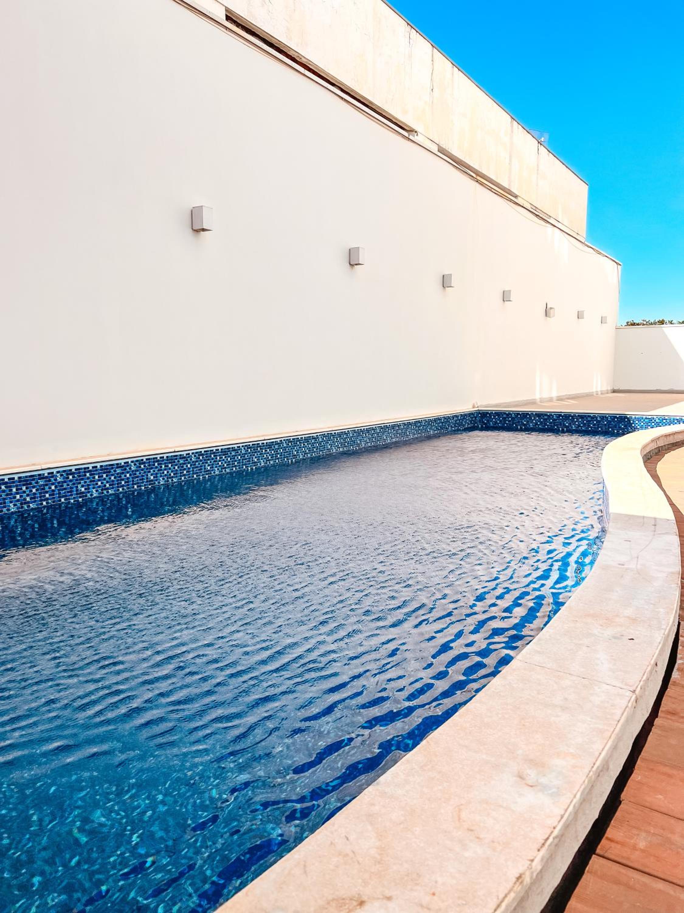 Das comodidades do quarto, academia e piscina.