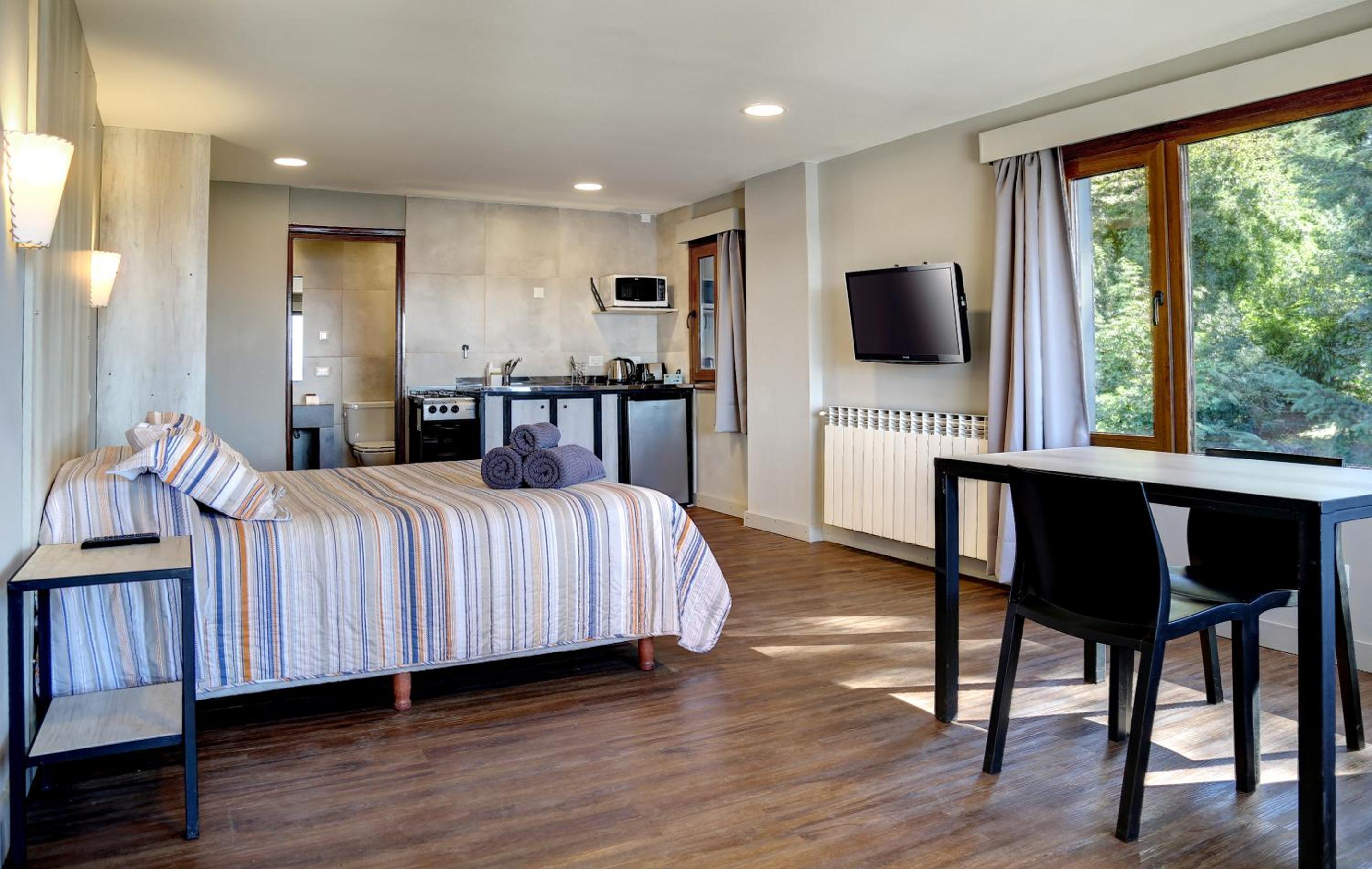 Escape to Las Liebres, a sustainable aparthotel in San Carlos de Bariloche offering stunning mountain views. Enjoy the tranquility of the garden and the convenience of free WiFi and private parking.