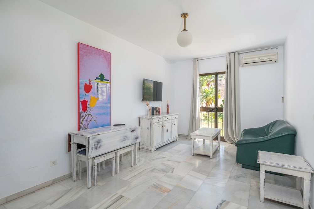 This property was ok. Had to move apartments because the blinds did not close in my first room, when I changed room the shower in this apartment was honestly ridiculous. Soaked the whole bathroom. Reported all the issues, nothing got sorted during my 4 night stay. There were no utensils, all of the plates and cutlery were left in the drying rack. The bottom of the bath was dirty. Didn’t go up to the pool area as I spent my time in Nerja. But other than these issues, it was ok.