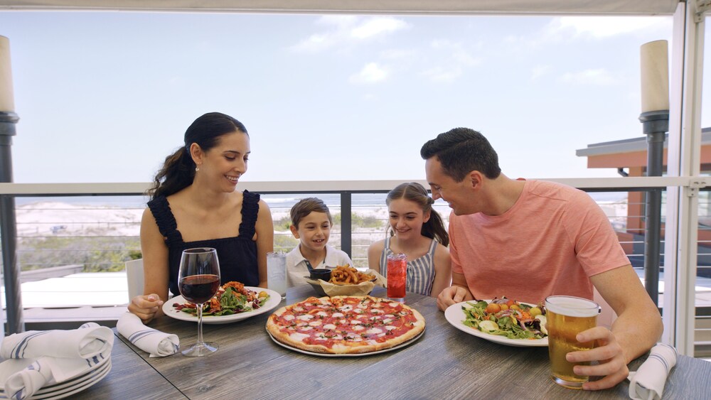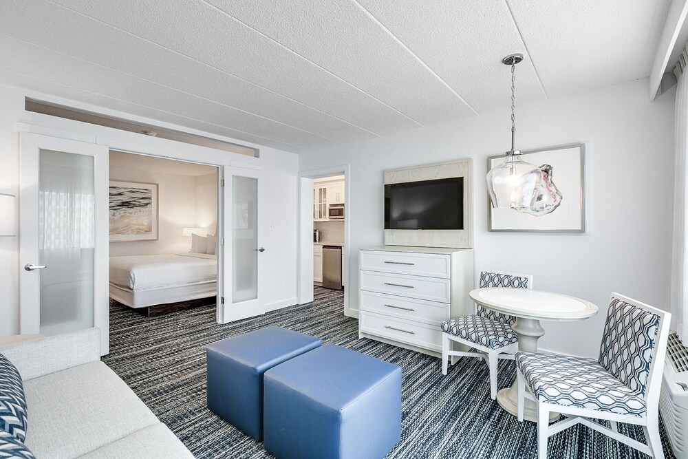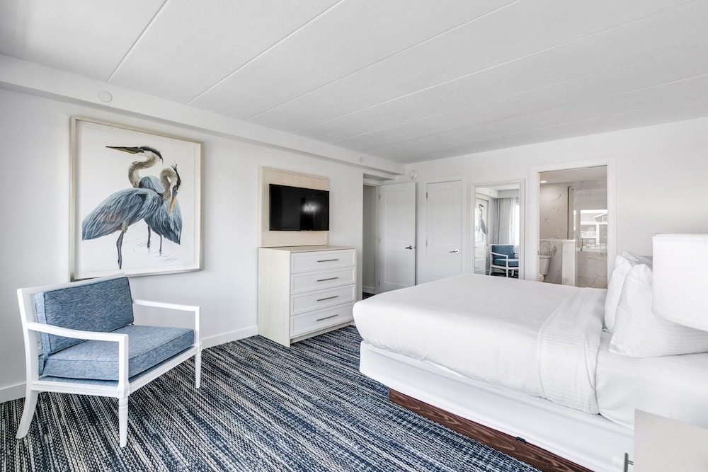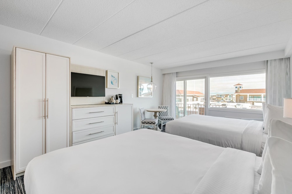 We like the cleanliness of the room and the view we had. The dining was good and the location to the beach was amazing. The kids in the pool were unruly, the servers were not trained well, and the original room we were given had a balcony that was not useable. The balcony overlooked the 1st floor roof that had standing dirty water with mosquitos. We were also next door to the laundry room and the workers kept slamming the door. We complained and luckily enough we were given a different room. It was inconvenient and a hassle to move all our things. Also the valet was no where to be found. We parked our own car. The first night there we had reservations in stone harbor and had to Uber there and back because our car was blocked in at the hotel. It seemed like they just did not run smoothly at this up class high priced hotel. On Tuesday the restaurants were not open in the morning so the lobby offered free coffee which was great. But for the price they should have free coffee everyday. We paid 13.00 a day for 2 coffees.