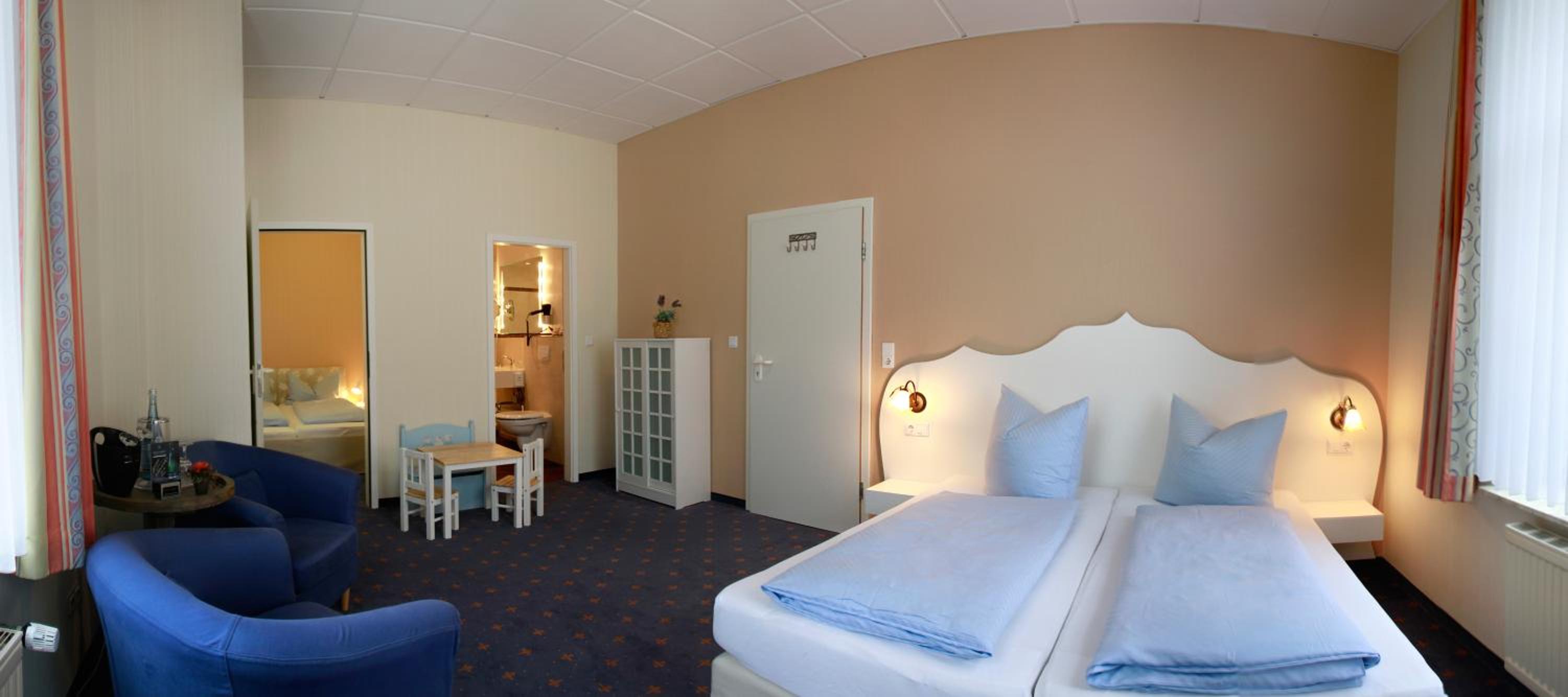 Relax in the stylish and modern rooms at Hotel Strandvilla Janine, each equipped with WiFi, flat-screen TV, and a private bathroom featuring a luxurious rain shower. Enjoy the convenience of a desk, cosmetic mirror, and hairdryer for a comfortable stay.