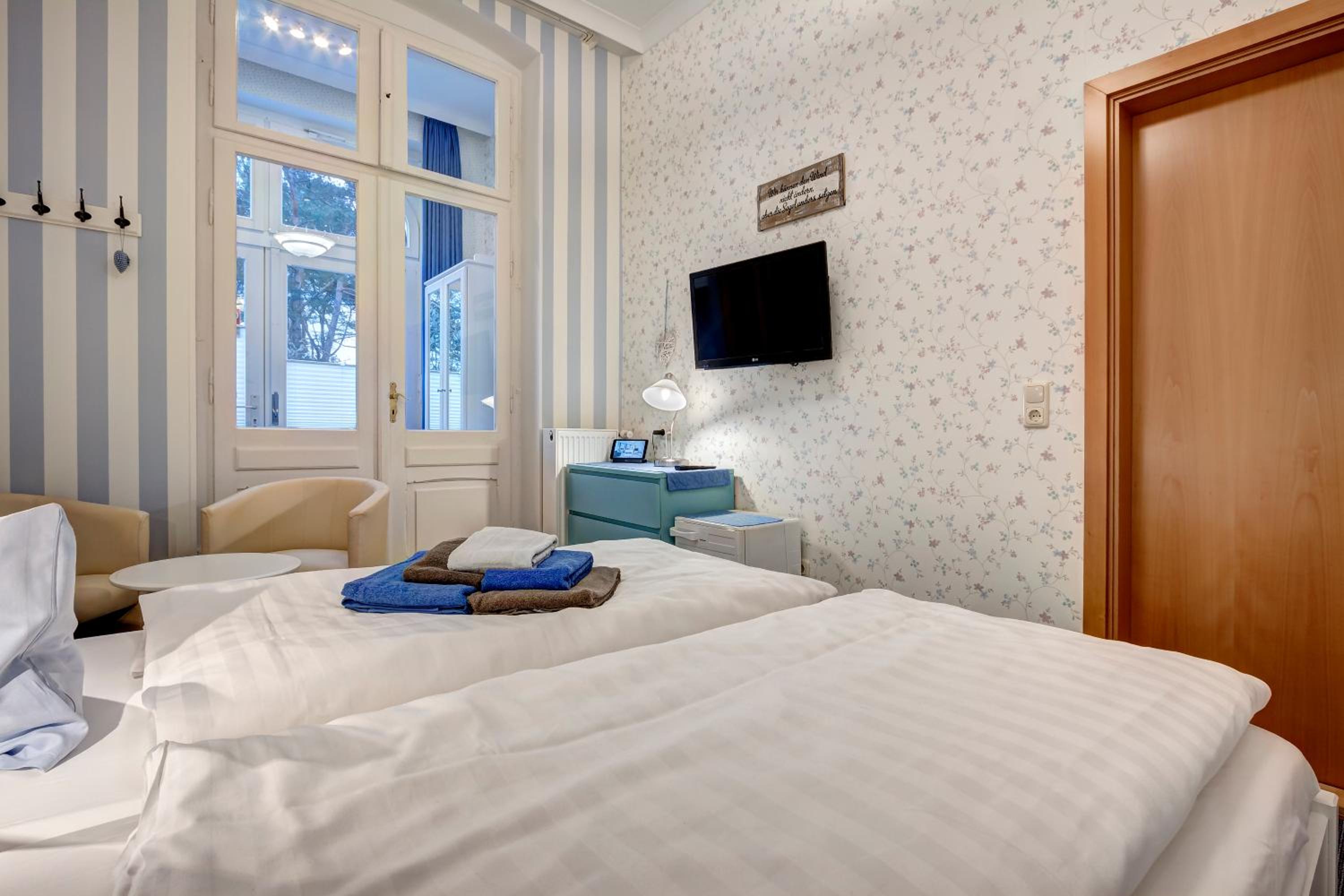 Unser Zimmer lag in der 1. Etage mit Blick zum Meer. Ein Zimmer zum Wohlfühlen, mit einer integrierten Veranda. Promenade vor der Haustür und wenige Meter zum Strand. Die Haltestelle zum Bäderbus (kostenlos), der die Ortsteile Heringsdorf, Bansin und Ahlbeck bis zur polnischen Grenze verbindet, befindet sich ein paar Meter entfernt, Das Frühstück war ausgezeichnet. Die Mitarbeiter durchweg sehr freundlich und hilfsbereit. Wir kommen sehr gern wieder.