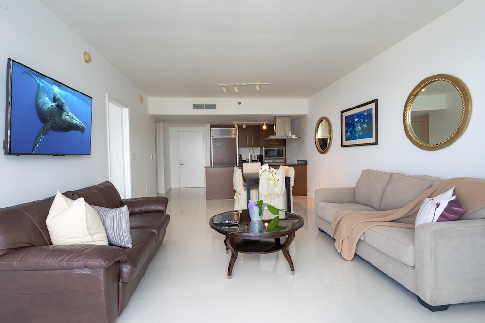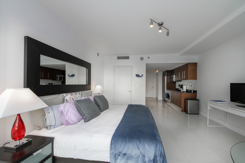 The unit was beautiful. Bed was great. However check in is not very convient front desk does not have fobs and there is only one contact. No toiletries are provide, no water no snacks. Room service is not available nor is maid service.