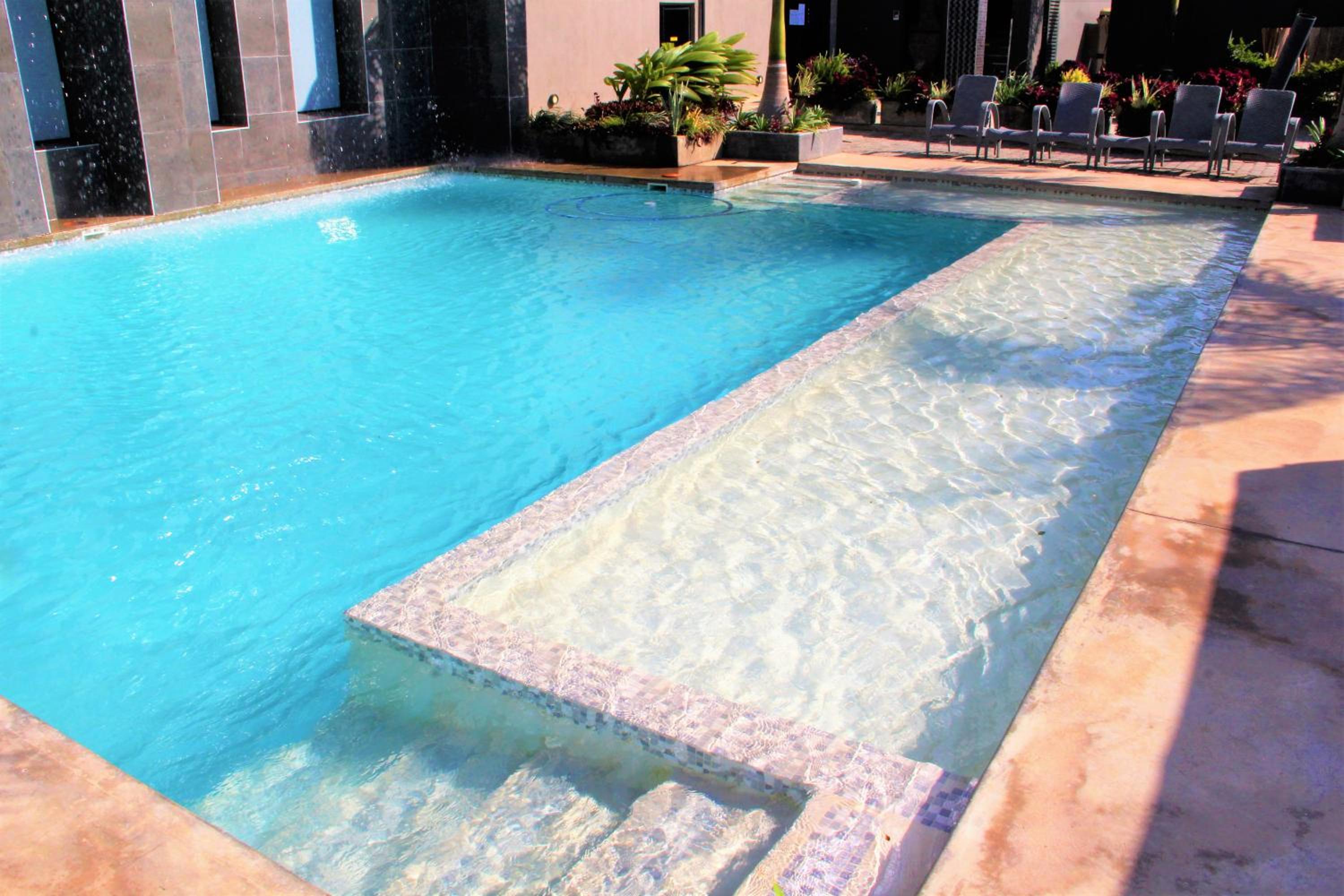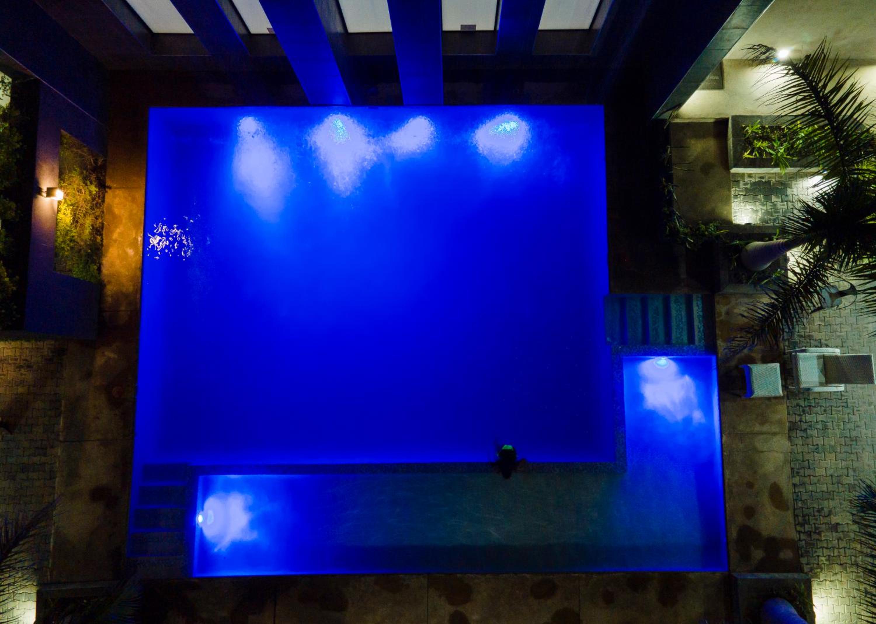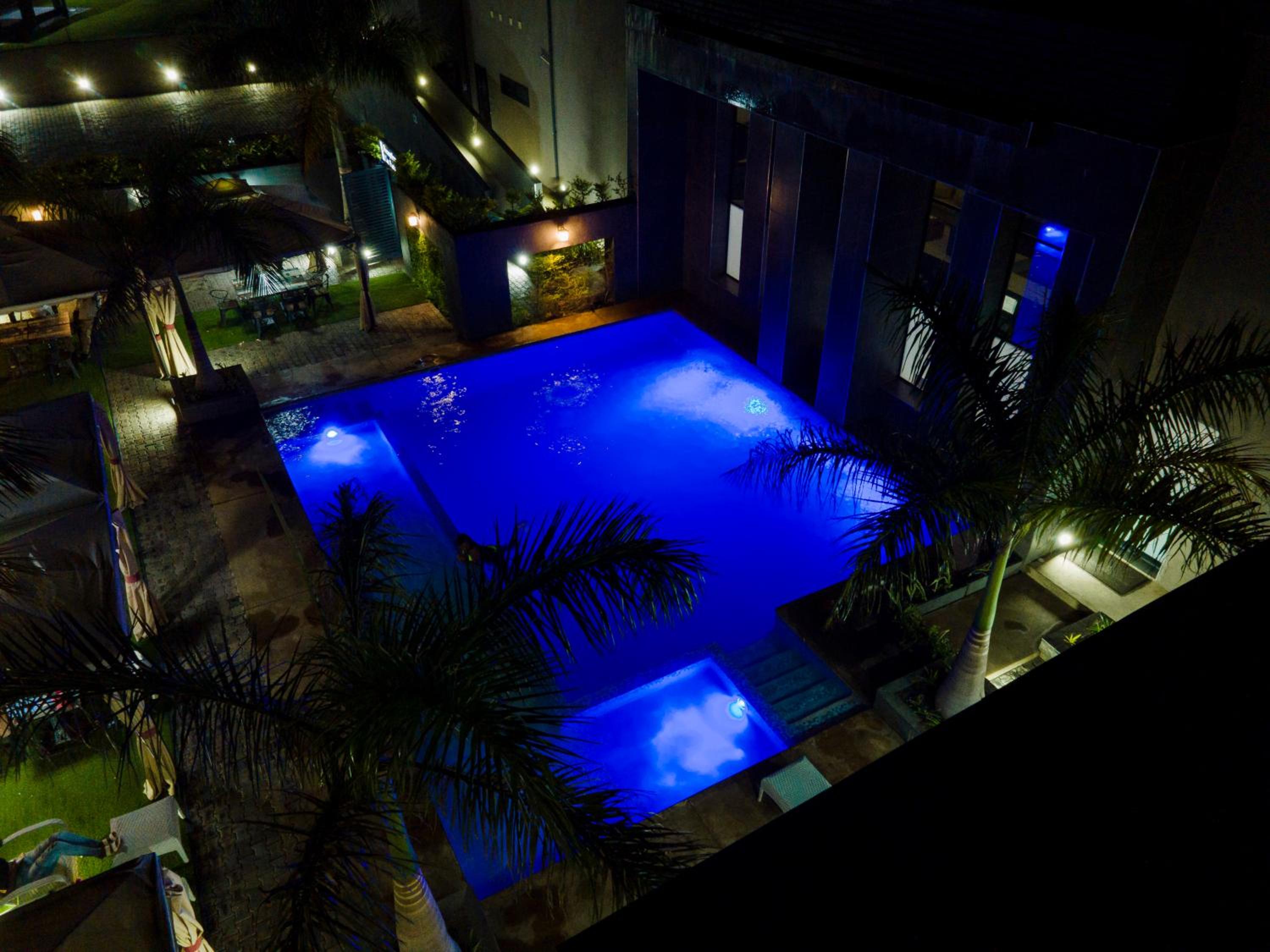 Luxurious Amenities: Urban Bliss Hotel offers an outdoor swimming pool, fitness centre, and a shared lounge.