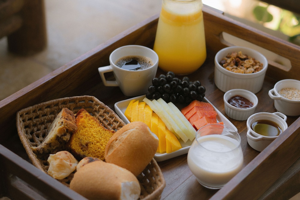 O café da manhã você escolhe no dia anterior e eles te entregam no horário marcado na acomodação, trazendo conforto e praticidade.