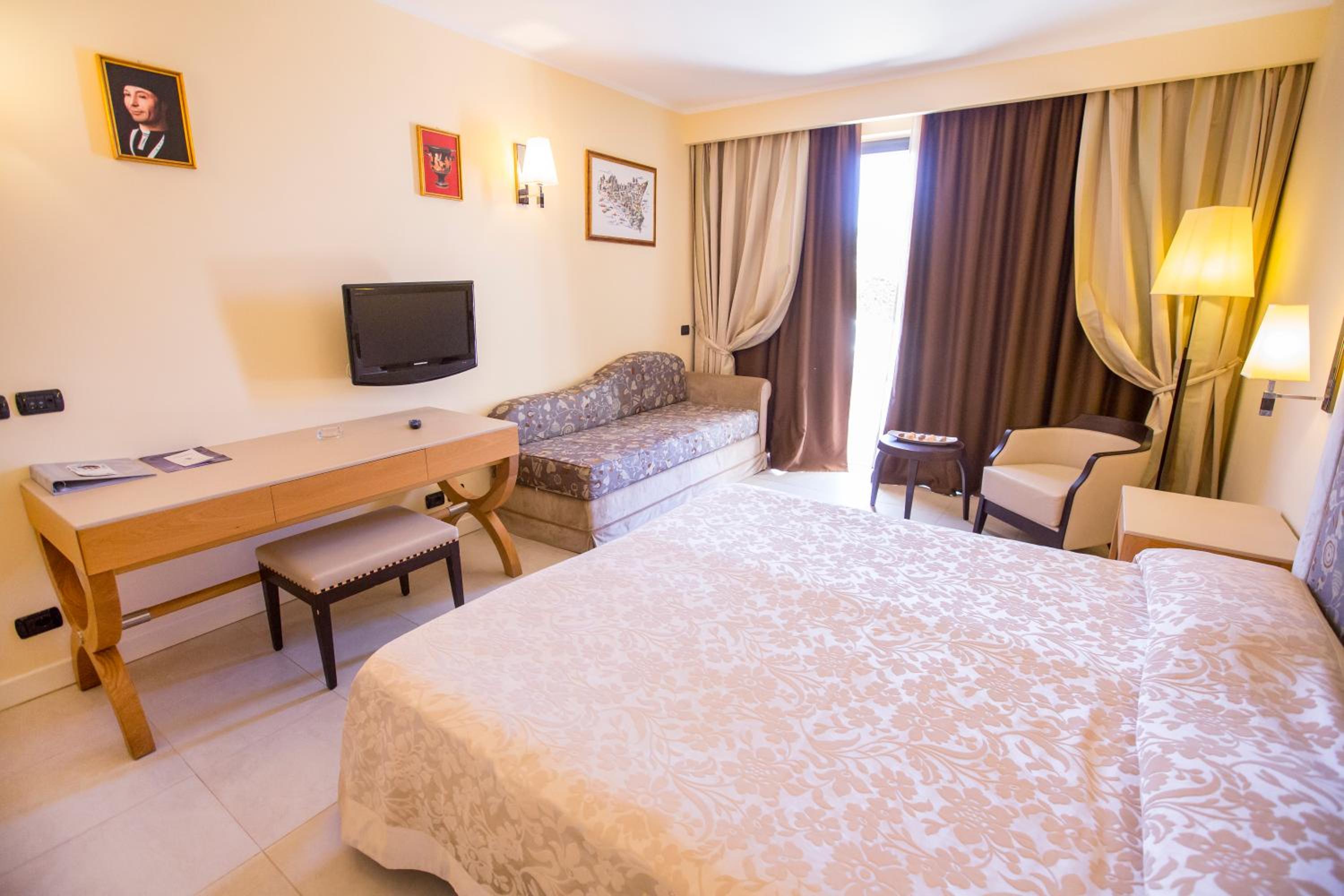 Each air-conditioned room at the hotel is equipped with modern amenities including satellite TV, a minibar, and a private balcony. Start your day with a delicious continental breakfast and savor delectable dining experiences at the rooftop SKY Restaurant or in the charming garden setting. Conclude your evenings with live music events at the bar and library, creating unforgettable memories at Cefalù Sea Palace.