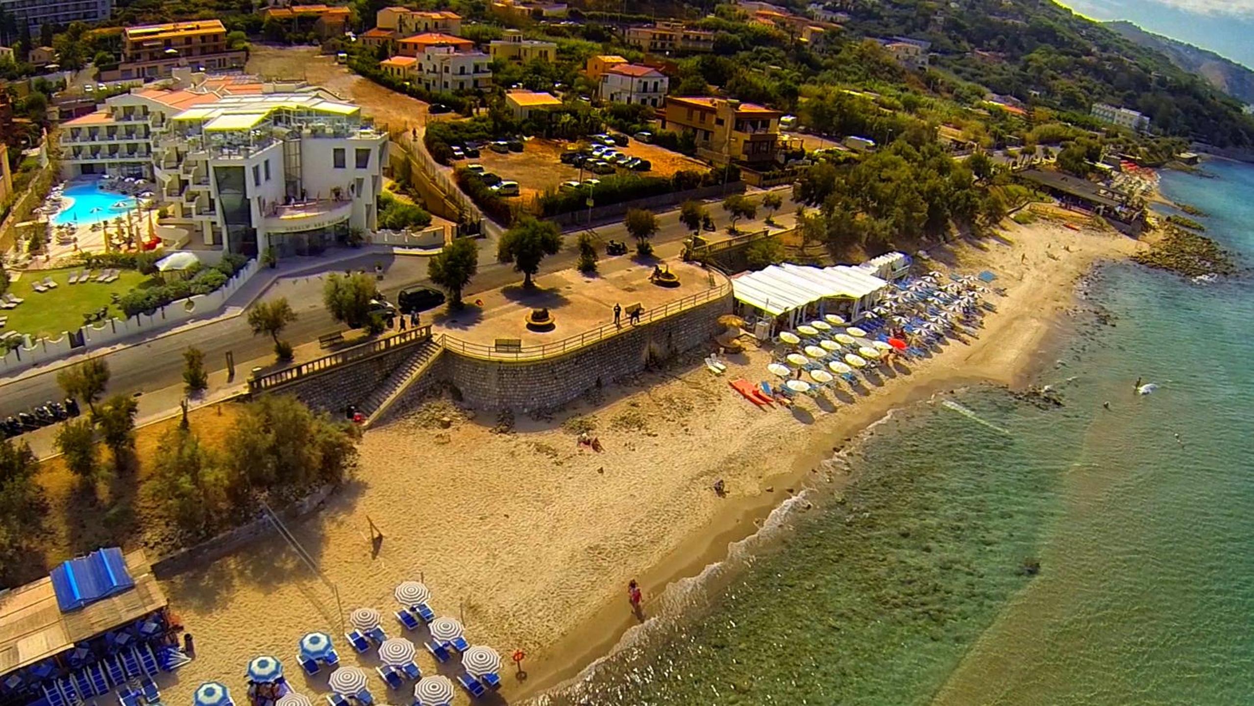 The Cefalù Sea Palace boasts a private beach with complimentary sun loungers and parasols, a beach bar, as well as convenient facilities like toilets and showers. Additionally, guests can enjoy a refreshing dip in the hotel's outdoor pool featuring a relaxing hydromassage corner.