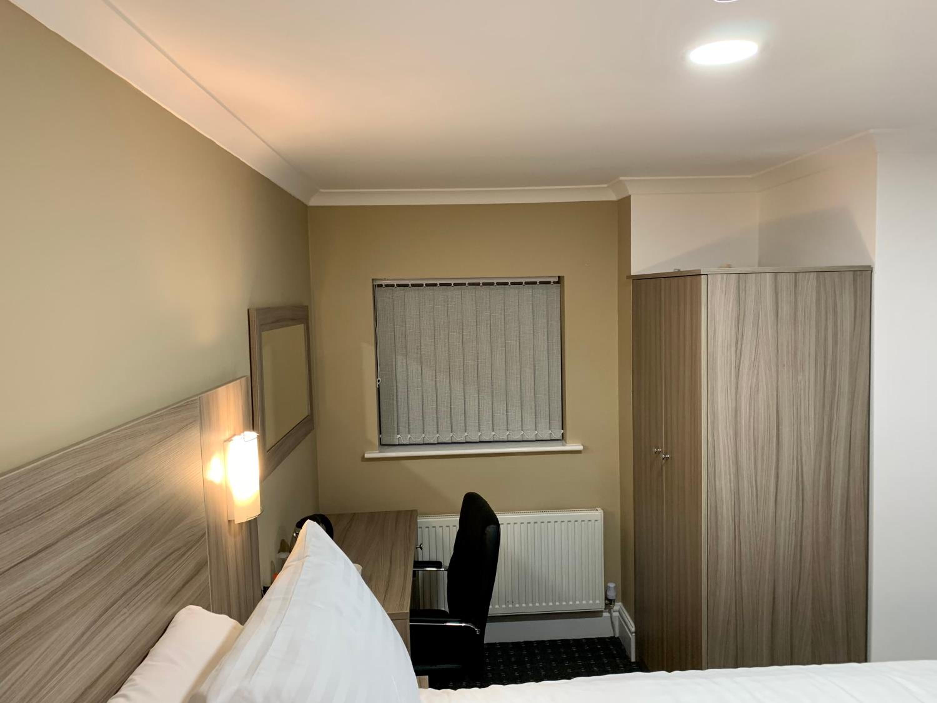 Opposite a very noisy pub with fighting going on outside until gone midnight. The first night I stayed I was woken up by a man dressed only in pants knocking on the door (the wrong one apparently). The second night I was woken up at 2.45am by a very drunk man in the next door room speaking loudly on his mobile phone on speaker phone (the walls are paper thin). A cheap hotel in a bad area, I should have known better than staying here.