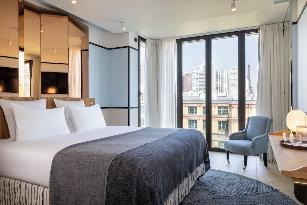 Don’t miss the rooftop bar: the sweeping, postcard-perfect view of the Eiffel Tower is worth lingering over, day or night.