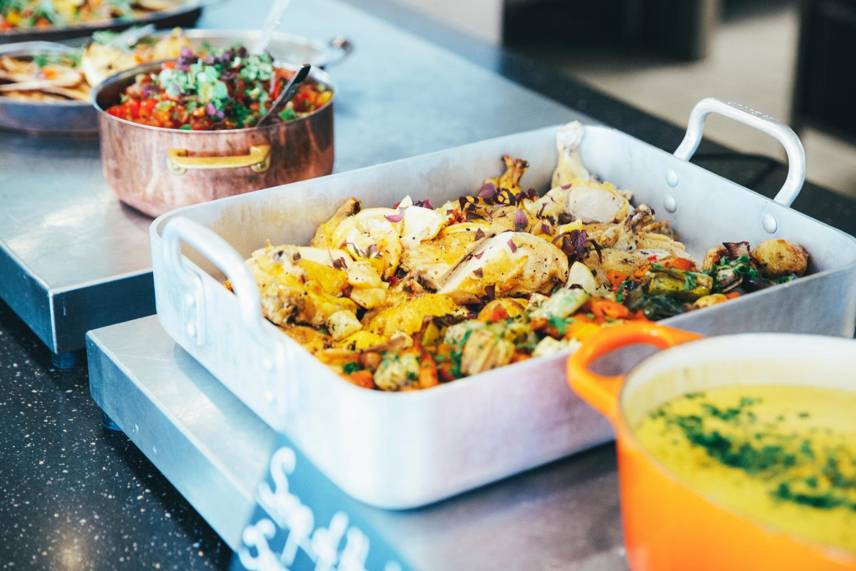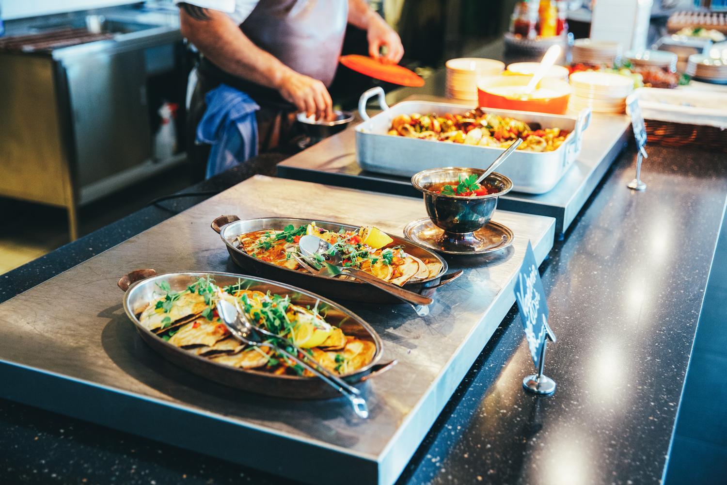God. vällagad middagsbuffé i restaurangen.
