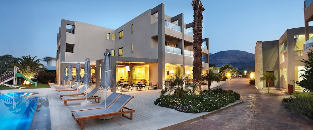 I was in a villa with the family (2 adults + 3 kids) for a week and we had a great time there. The location is 500m off the Georgioupolis town and it's really quiet. The appartments are quite new and were cleaned every day.