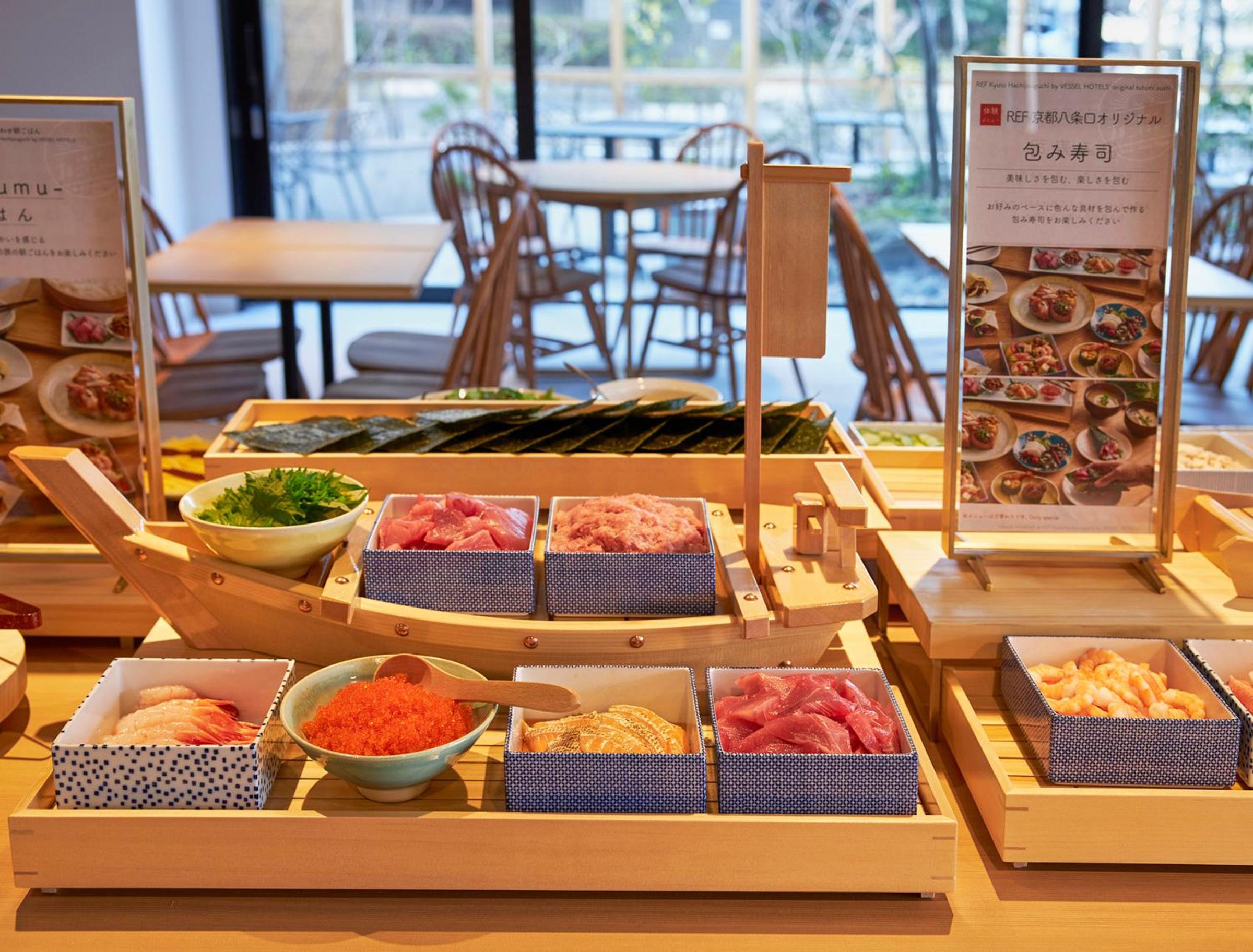 早餐很好吃,种类算是比较多的了,早饭就提供刺身,可以自己做海鲜饭。有的时候大厅还会有一些小活动,可以参加。地理位置方便,一般京都站出行的车可以选15分钟后的,出行计划容错性大