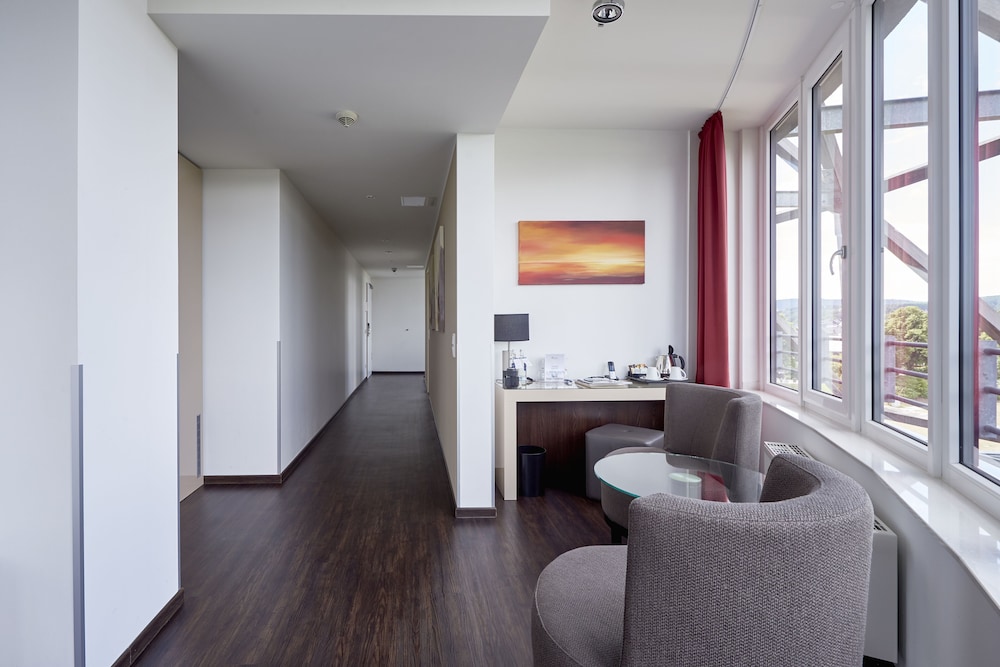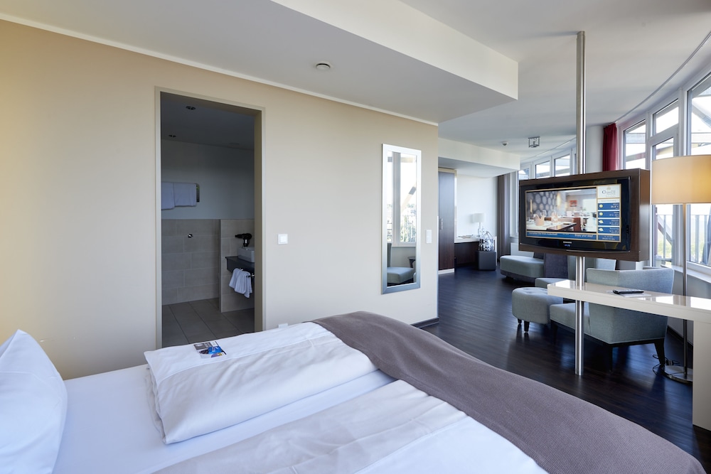 Die Mitarbeiter sind sehr freundlich, was aber nicht über fachliche Mängel hinwegtäuscht. Es ging vieles schief. Trotz mehrfacher Korrespondenz, wurde nicht aufgeklärt, dass man beim Abendessen auch nur einzelne Gänge nehmen kann. Außerdem wurde eine per Email bestätigte Massage einer anderen Person zugeordnet und dann ohne Information komplett gestrichen. Immerhin wurde nach heftigen drängen, eine kurze Massage als Ausgleich möglich gemacht. Bedingt durch eine Tagung im Haus, deren Gäste den Spa-Bereich nicht nutzen, war es angenehm leer. Bei vollem Haus, mit Gästen, die zum Wellness dort sind, ist es nicht auszudenken. Ein Ruheraum ist zu wenig. Auch nur zwei Duschen. Ein anderer Ruheraum ist mit einem großen Whirlpool kombiniert. Dieser ist extrem laut. An Ruhe ist da nicht zu denken. Außerdem muss der Whirlpool mit Textilien genutzt werden, obwohl der Rest des Raumes Nacktbereich ist. Da die Bar ist gut ausgestattet und war angenehm. Beim Frühstück, sind die Brötchen zu kritisieren. Die Körner Brötchen wirkt und wie eingefärbt. Das Abendessen ist wirklich überteuert. Man kann nur empfehlen, auswärts zu essen. Der Italiener Salvatore am Bahnhof, wäre eine gute Alternative. Zum Haus: In den oberen Stockwerken hat man eine tolle Sicht. Nachteil: Durch die riesen Fensterfront mit Metallgestänge, kann man in windigen Nächten, kaum ein Auge zu machen.