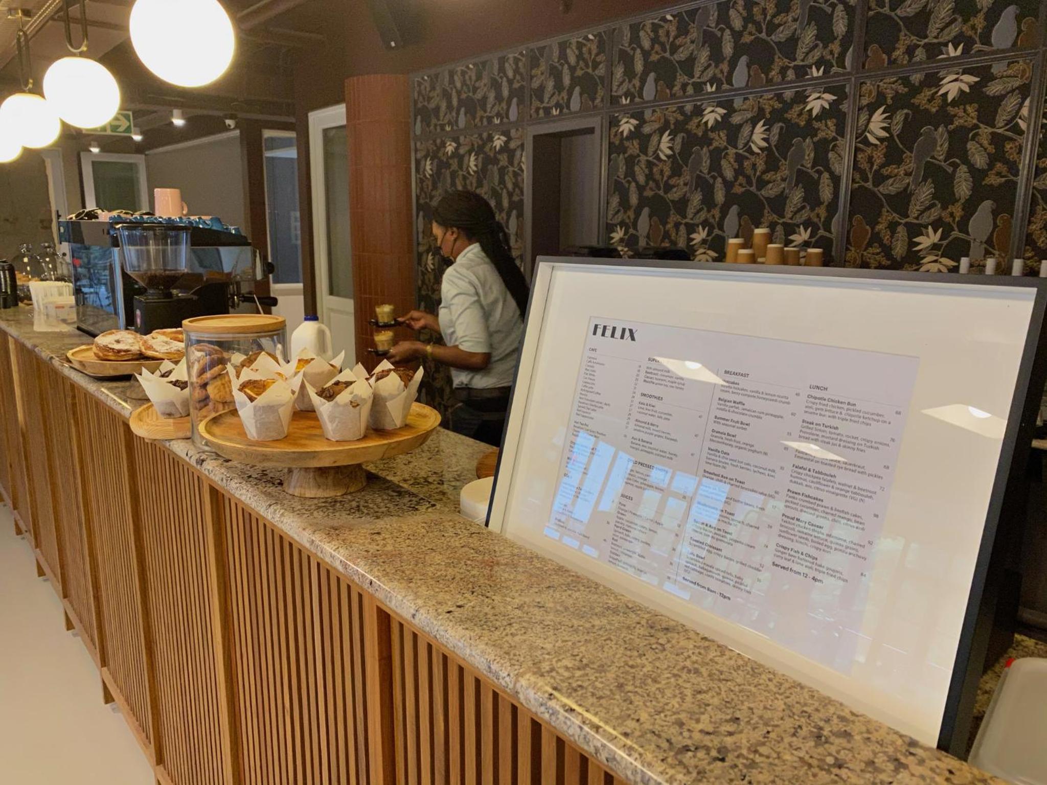 Welcoming staff. Wonderful restaurant/bar and co-working facilities in the same building. Central location in the heart of Rosebank. Tasteful, modern decor and design.