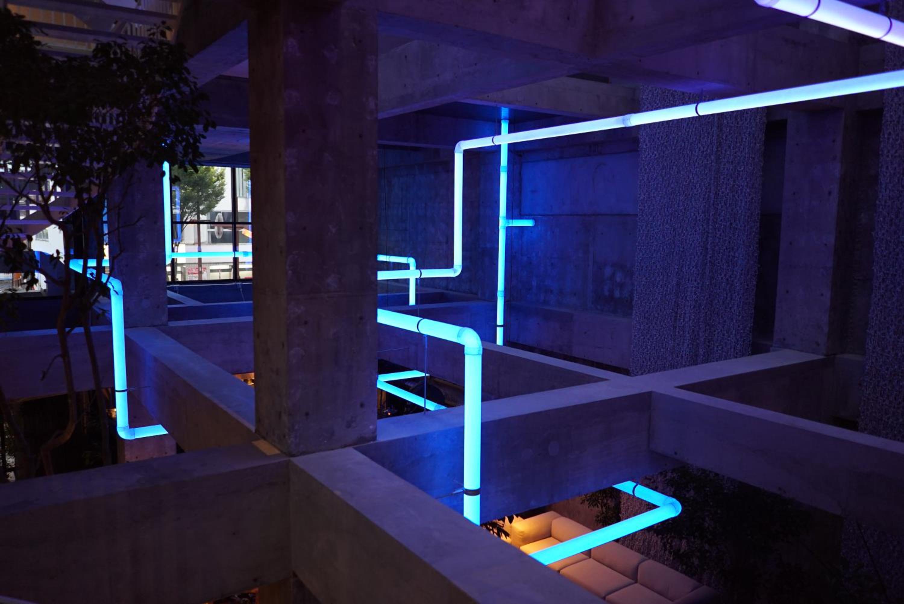 クリスマスイルミネーションの設営中で、エントランスに機材が多く少し落ち着かなかった。