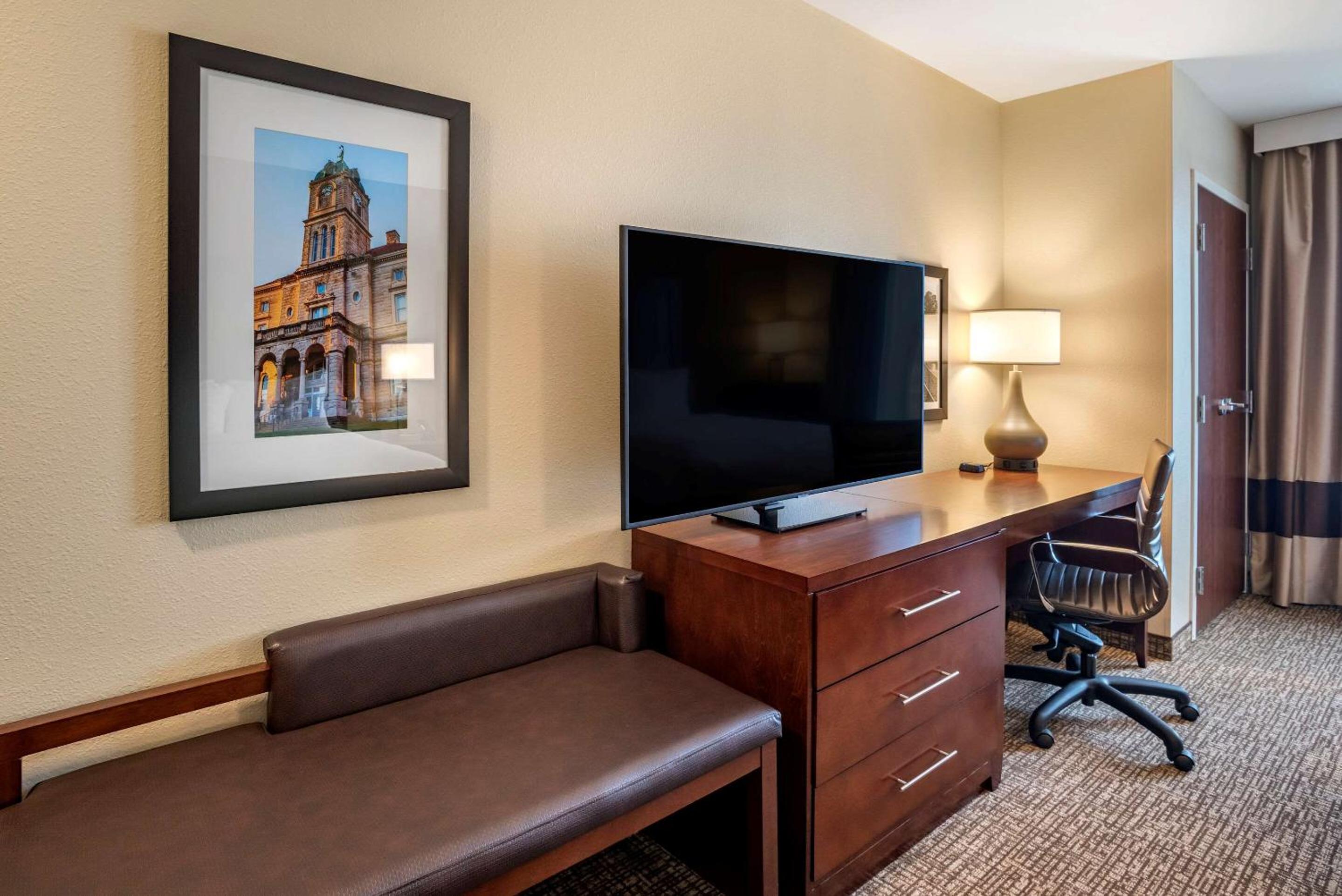 Each room at Comfort Inn & Suites is equipped with essential amenities like a desk, TV, and private bathroom. The air conditioning and wardrobe add to the comfort of the stay. Guests can start their day with a delicious buffet or continental breakfast, setting a perfect tone for their adventures in Harrisonburg.