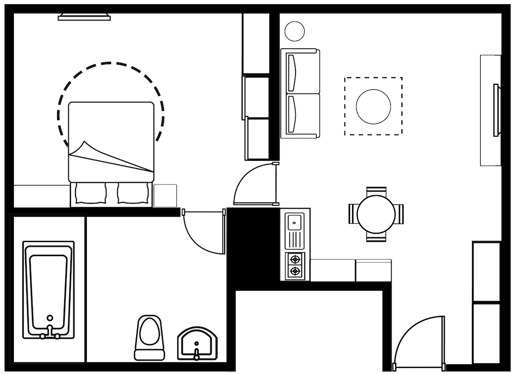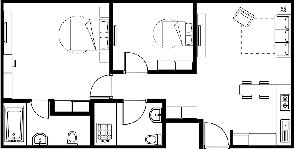 広い部屋でゆっくりできます。洗濯機と調理設備があるのもいいです。