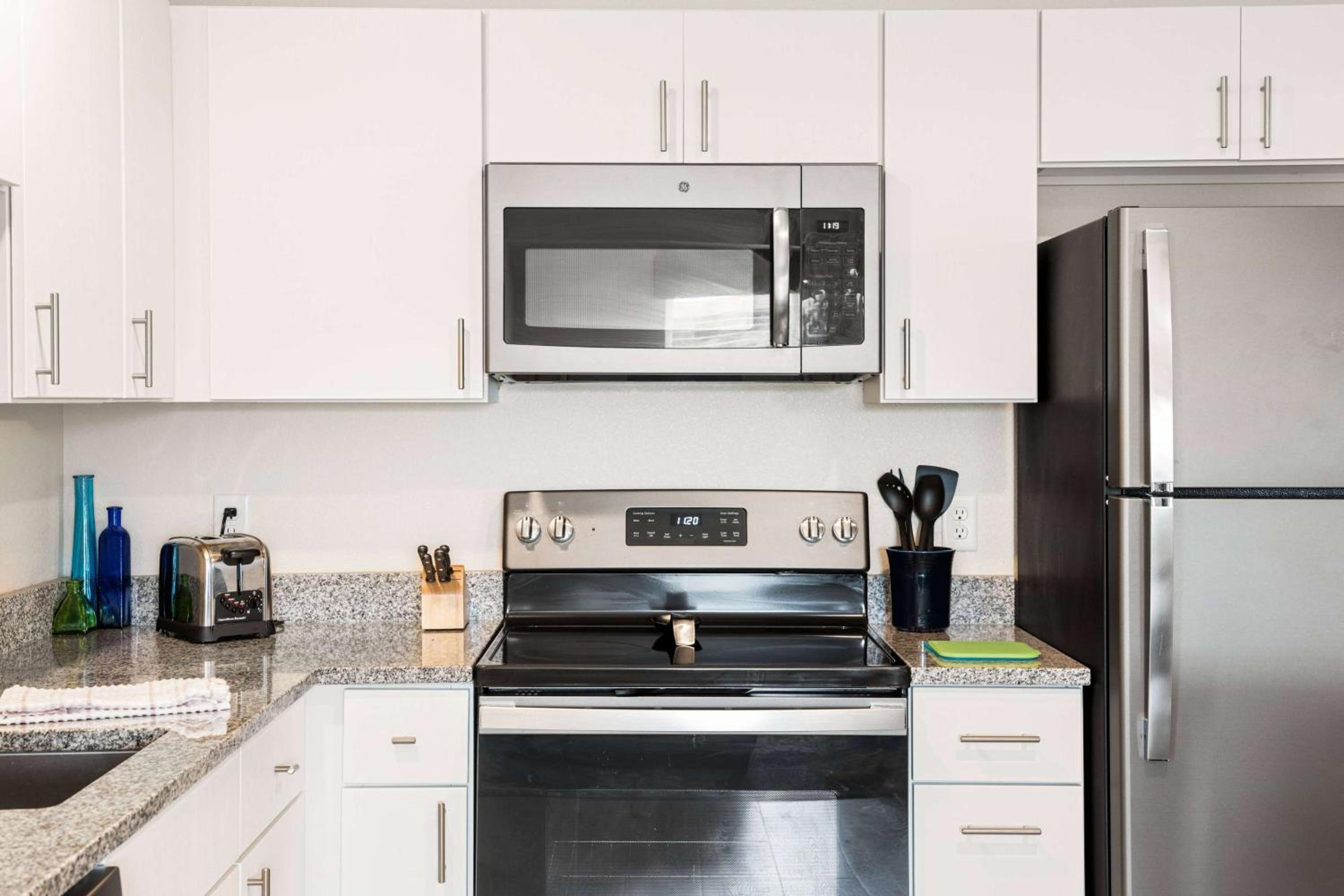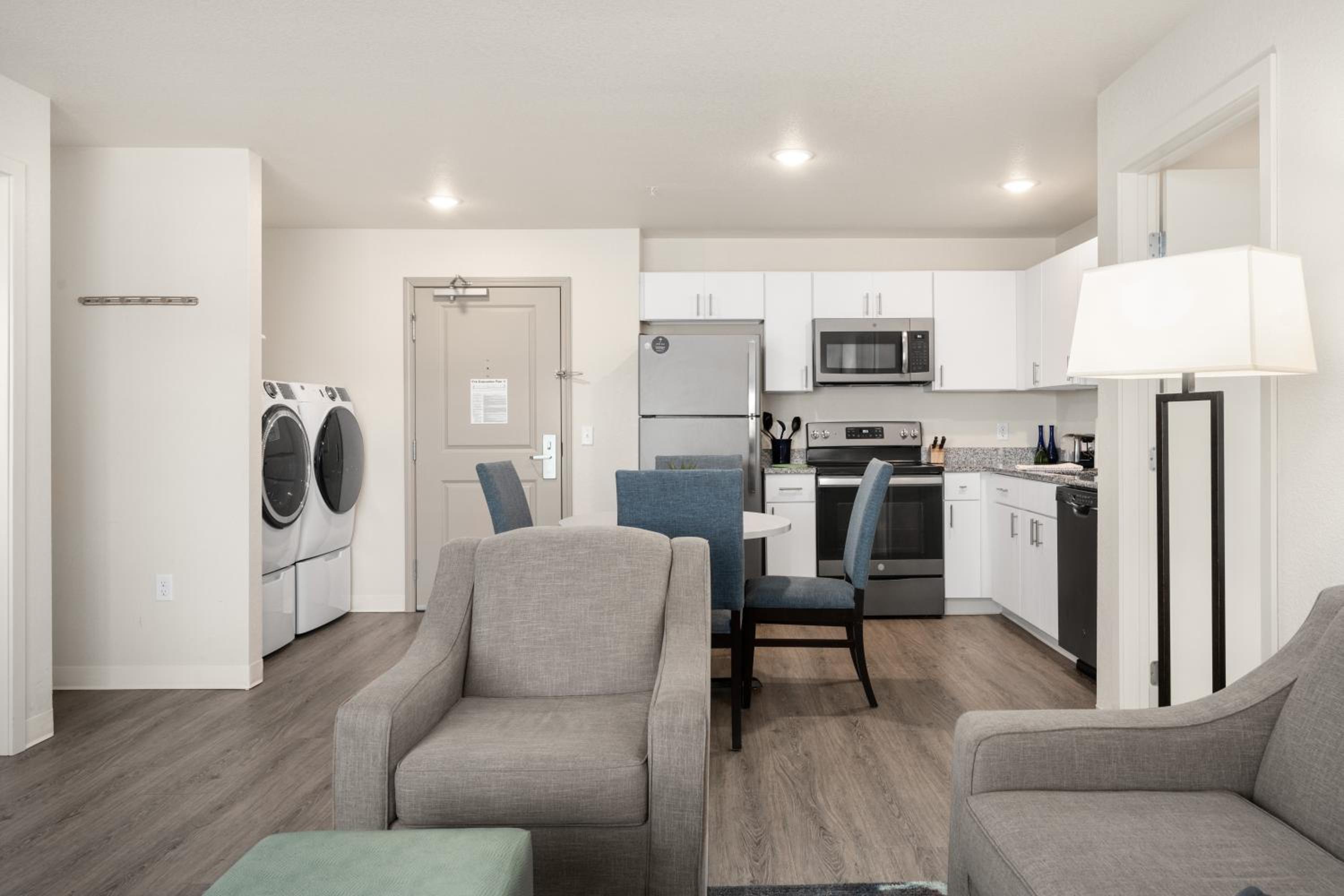 Great lay out, loved the 3 bedrooms plus living areas, kitchen and laundry appliances great quality, kitchen has bare minimum cooking/eating stuff which was helpful for preparing meals from Trader Joe's, latte machine in lobby was a hit. Location super convenient/great access to hwy 169