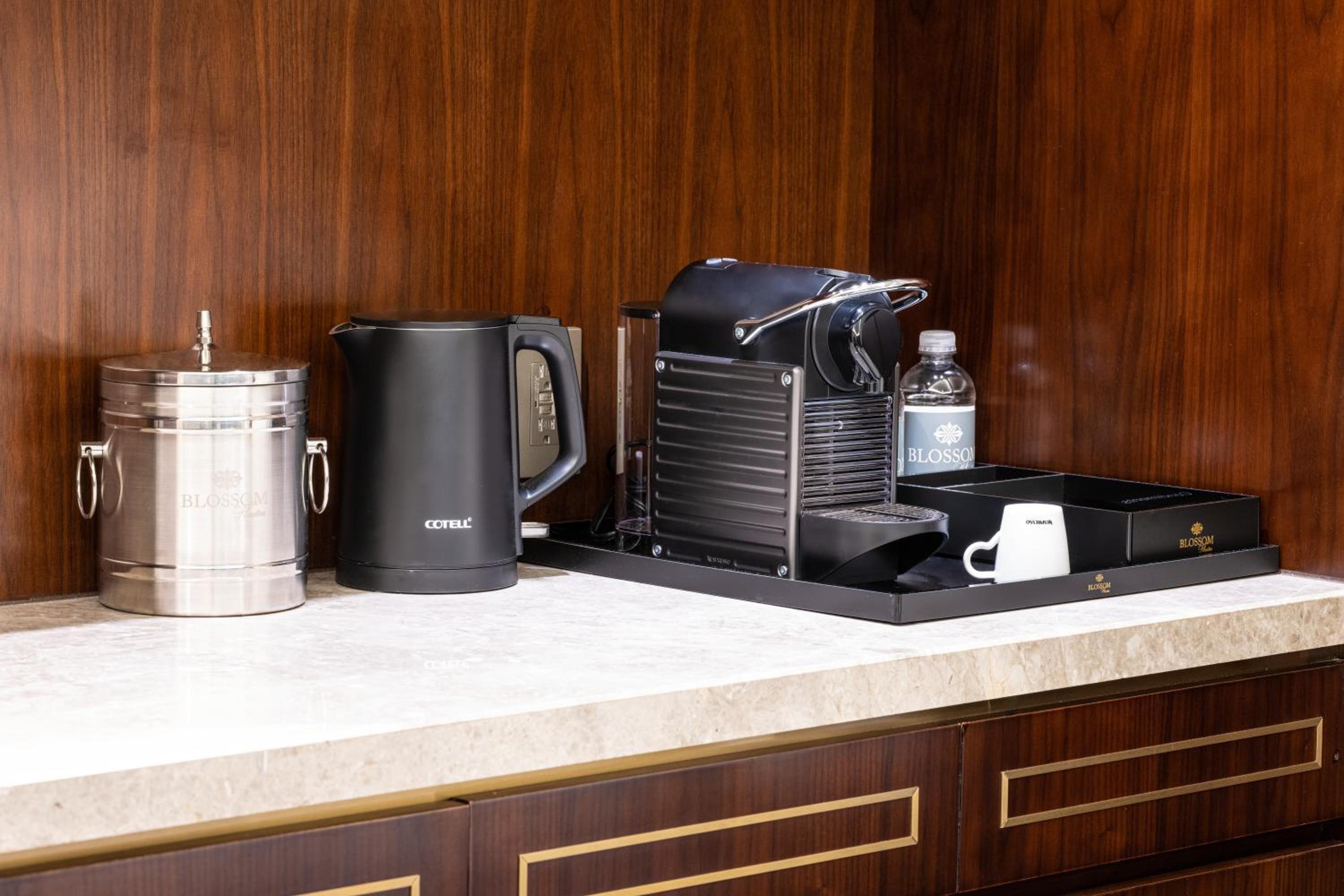 Descriptors for the Nespresso pods. For example, there is a blue one and a green one (is one of them Decaf?) No descriptors and the front desk staff had no idea whatsoever. Also, there was only 2 pods for 2 adults, but you should have more. We also left after check out, waiting for our vehicles on a very hot day, asking for water and only given 2 bottles and told that all 4 of us would have to share. Not classy at all, and we left with a poor opinion of the lobby staff. I would rather you add $5 to my nightly rate, and offer us ALL water at the Valet, than refuse and tell us to share a bottle (so rude and unnecessary for a Boutique Hotel.