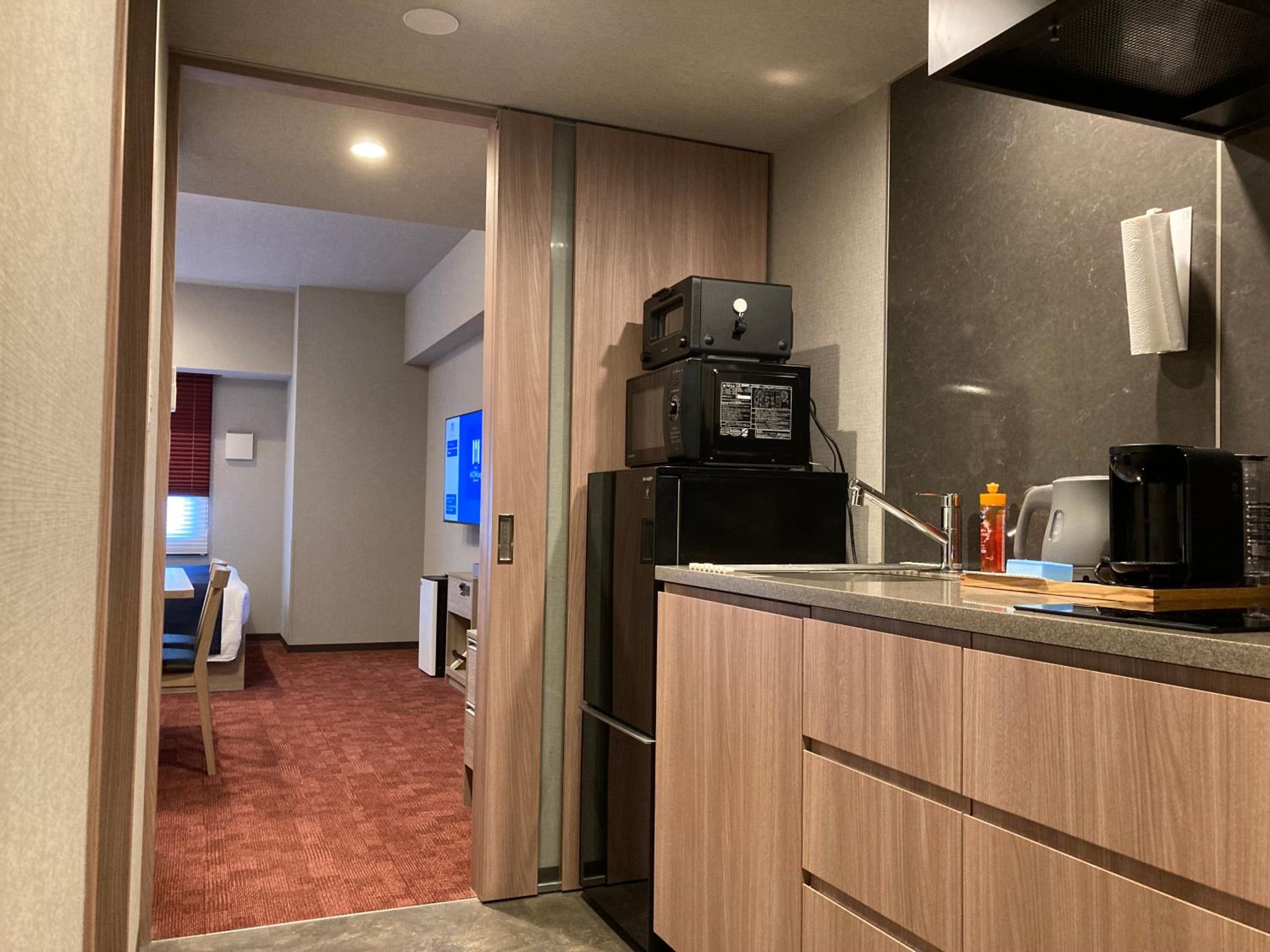 Excellent quiet location, so close to transport. Huge room for Tokyo standards, and super helpful to have a washer dryer in the room.
