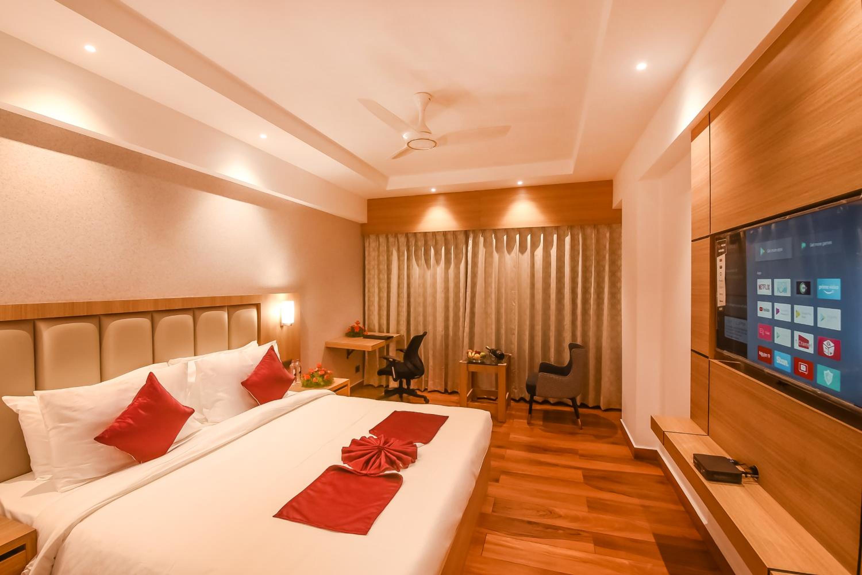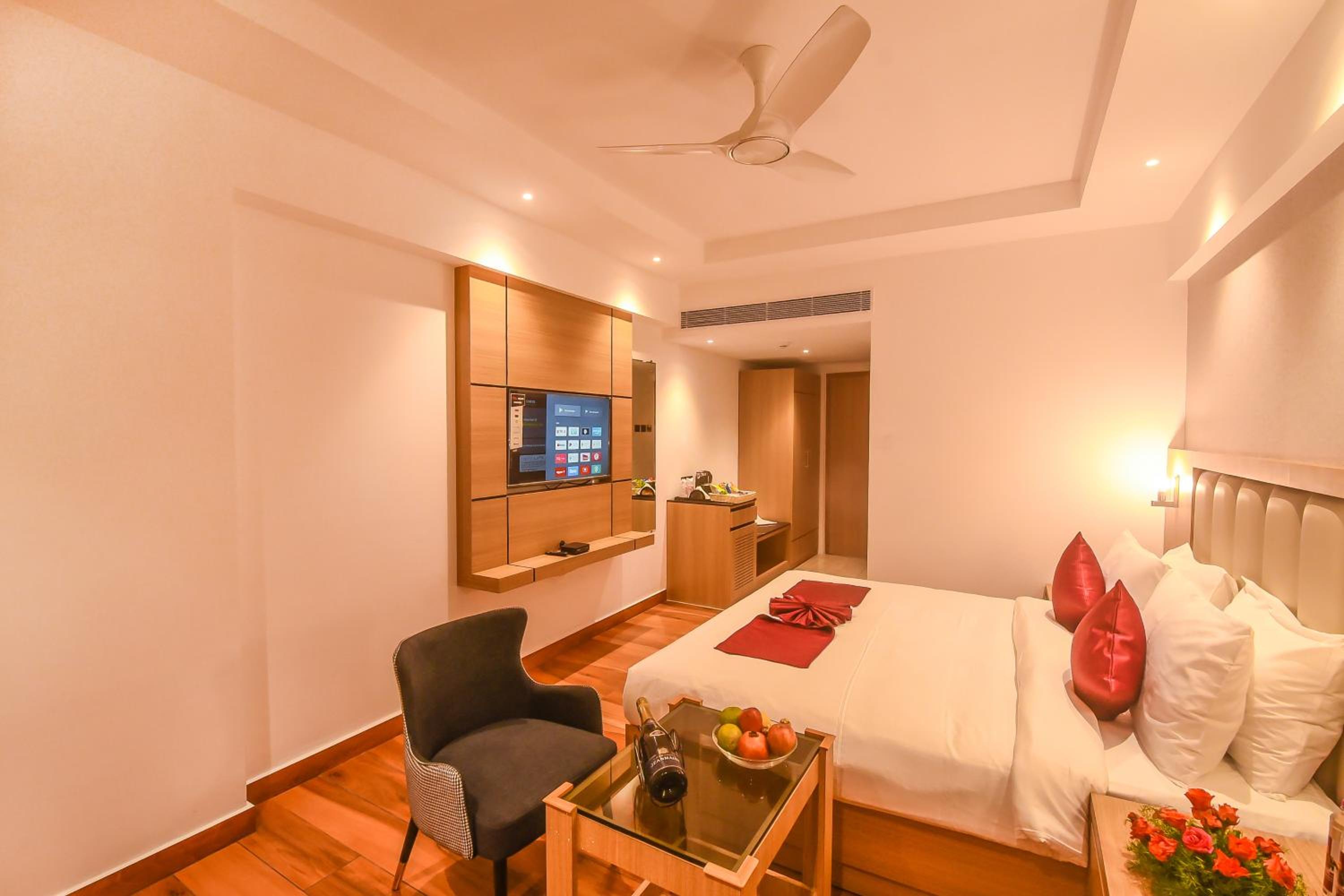 Emerald Clarks Inn Suites in Mysore offers air-conditioned rooms with modern amenities, ensuring a comfortable stay. Guests can enjoy a flat-screen TV, minibar, and a private bathroom, providing a touch of luxury during their visit.