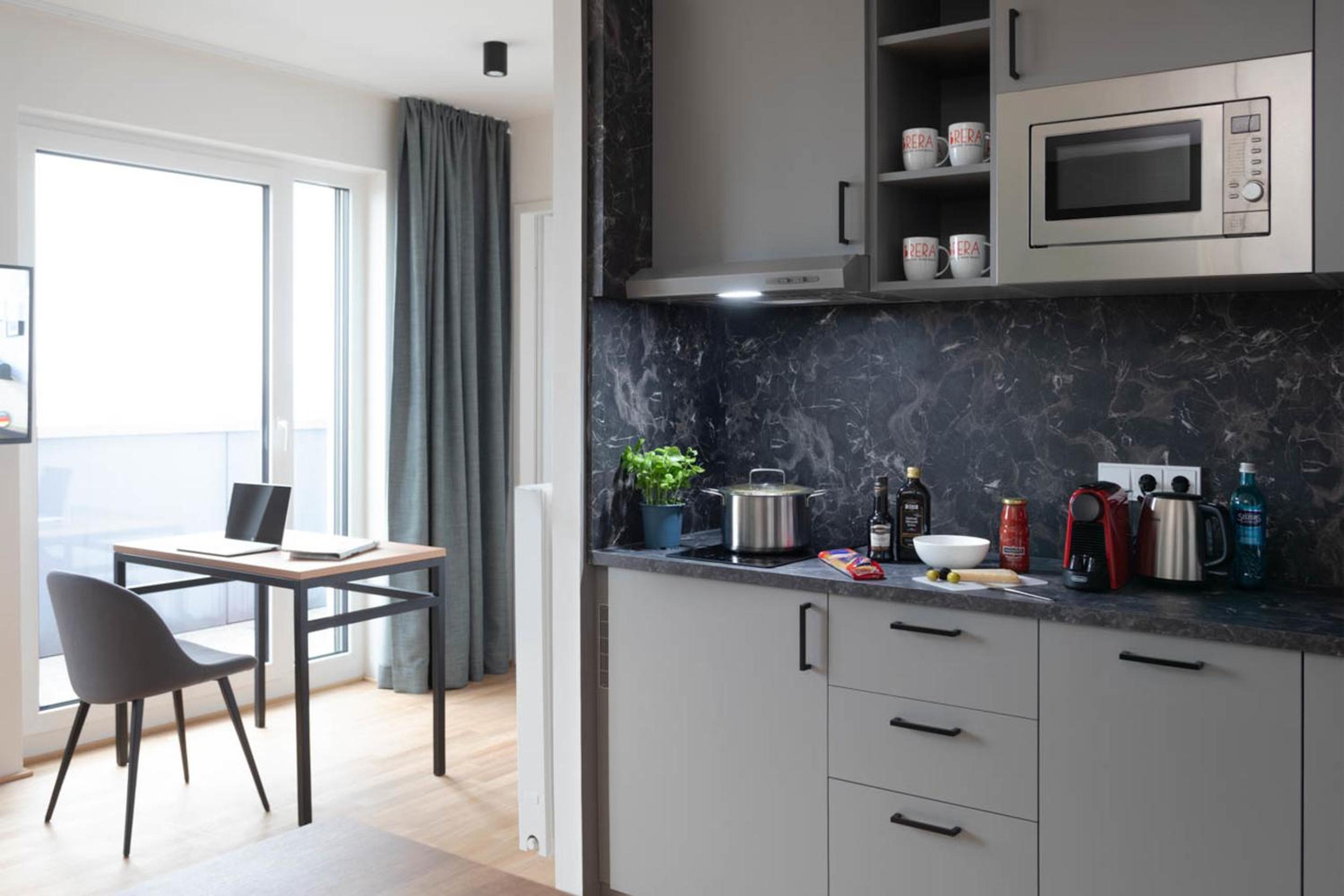 Each unit at Brera Serviced Apartments features parquet floors, a fully equipped kitchen, a dining area, and a flat-screen TV for entertainment. Guests can enjoy the convenience of a dishwasher, microwave, toaster, and coffee machine, making it a home away from home.