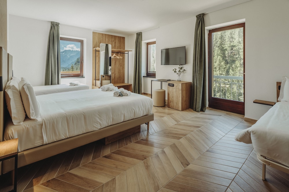 Great mountain view room, breakfast was great filled with lots of variety. We picked this location as the loop for Lago di sorapiss starts and ends there.