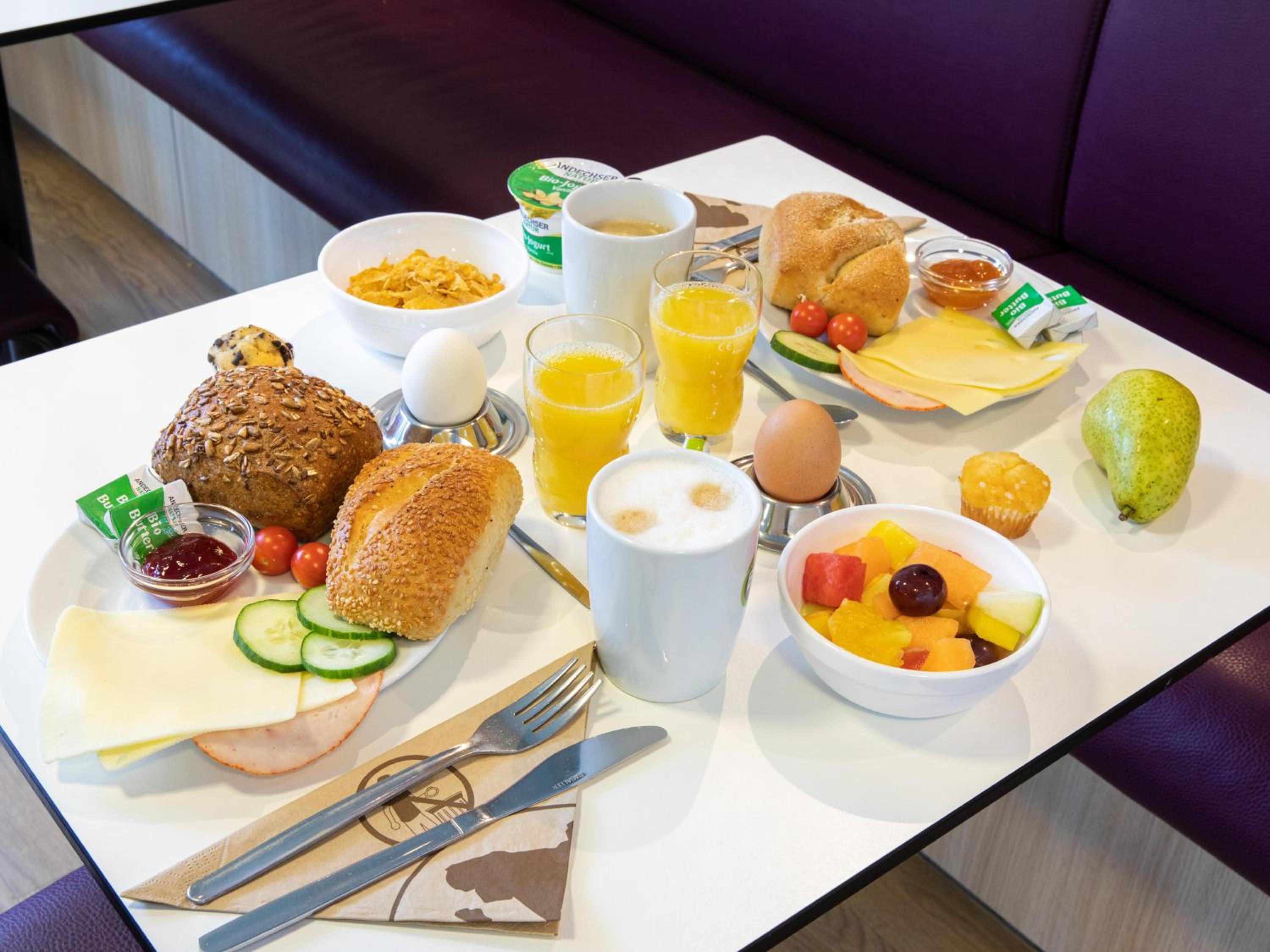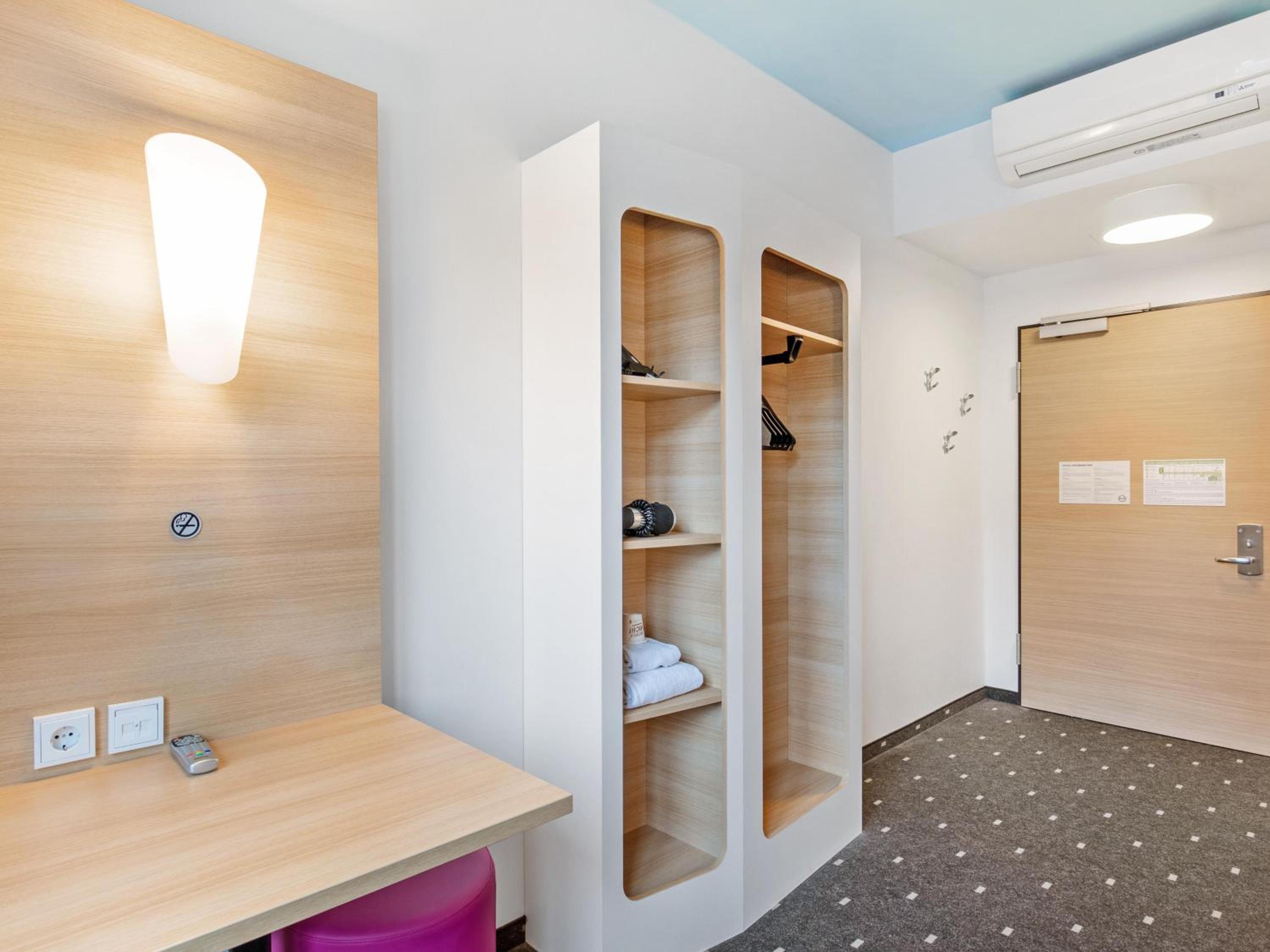 Kaum Platz, um Sachen auszupacken. Zudem ein überteuertes Frühstück, in dem das bisschen, was es gibt, auf zu wenig Raum verteilt ist und man daher das Müsli schonmal aus einem Glas in gefühlter 2m Höhe angeln muss. Statt im Hotel zu frühstücken, lieber in einer der örtlichen Bäckereien einkehren. Kostet nicht mehr und man hat genau das, worauf man Lust hat und das in einer guten Qualität (eine größere Kette hat eigentlich immer einen Café-Bereich).