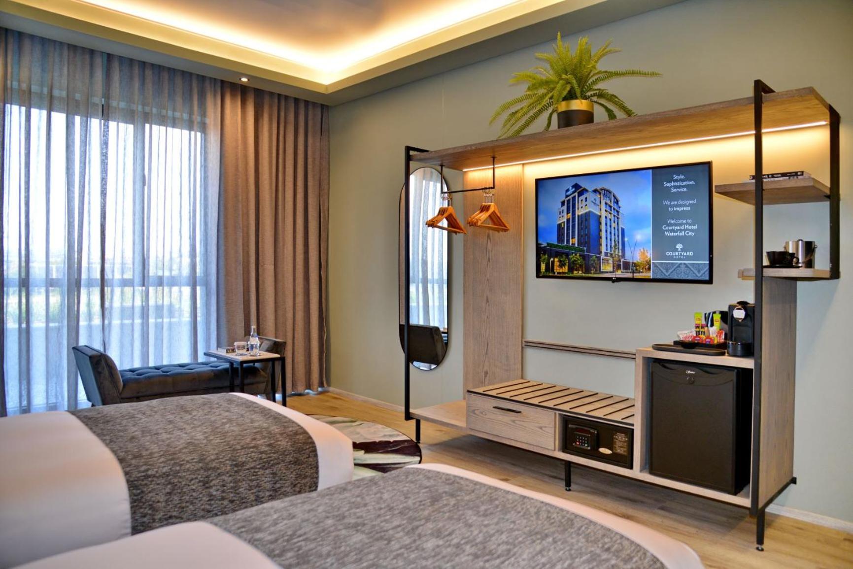 Courtyard Hotel Waterfall City offers air-conditioned rooms equipped with modern amenities like a coffee machine, fridge, and flat-screen TV. Guests can enjoy a comfortable stay with attentive room service and free WiFi.